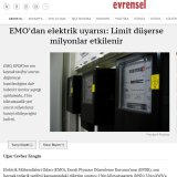 EMO’DAN ELEKTRİK UYARISI: LİMİT DÜŞERSE MİLYONLAR ETKİLENİR (EVRENSEL.NET, 07.10.2025) 08.10.2025 |