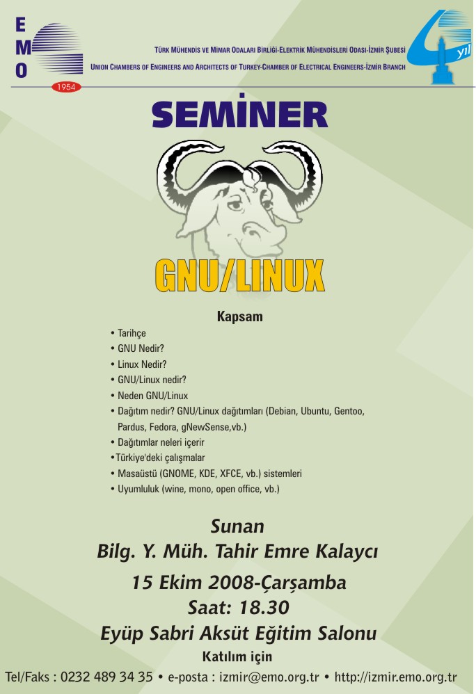 SEMİNER: Tarihçe GNU Nedir Linux Nedir GNU/Linux Nedir Neden GNU/Linux GNU/Linux Dağıtımları (Debian, Ubuntu, Gentoo, Pardus, Fedora, gNewSense, v.b.)GNU/LİNUX Dağıtımlar neleri içerir Türkiyedeki Çalışmalar Masaüstü (GNOME, KDE, XFCE, v.b.) sistemleri Uyumluluk (wine, mono, open office v.b.)