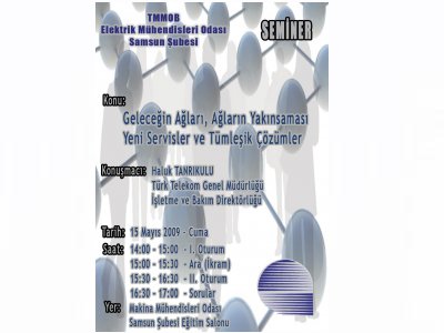 Türk Telekom Genel Müdürlüğü İşletme Ve Bakım Direktörlüğü'nden Haluk TANRIKULU tarafından "Geleceğin Ağları-Ağların Yakınsaması-Yeni Servisler ve Tümleşik Çözümler" konulu bir seminer verilecektir.