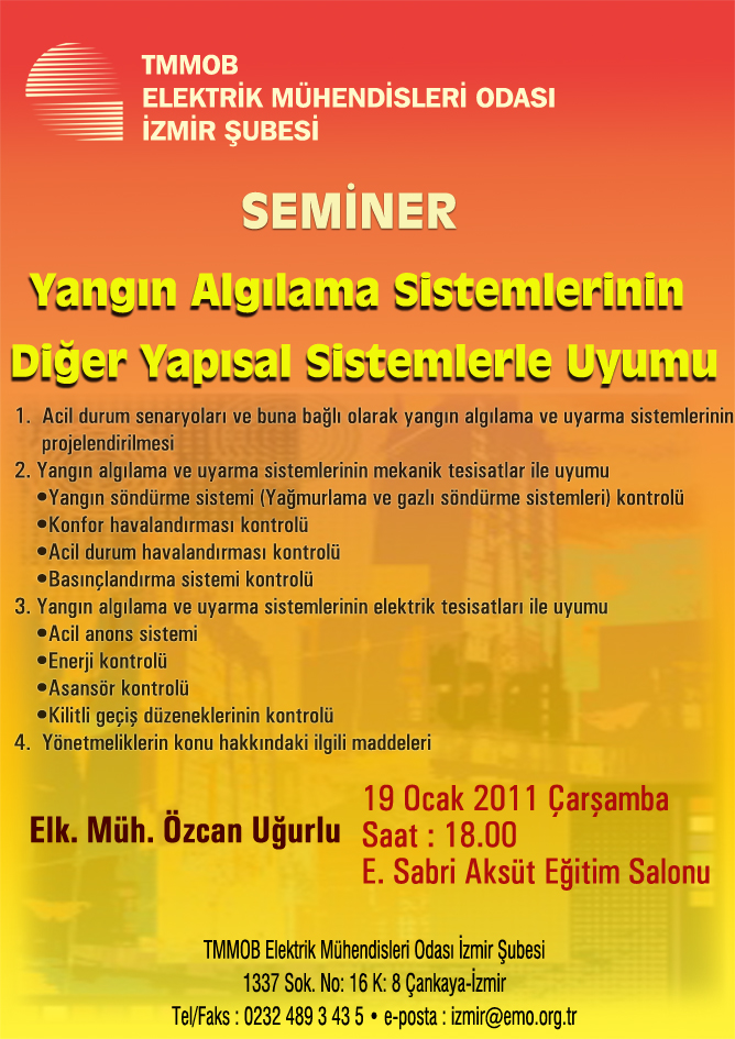 SEMİNER : YANGIN ALGILAMA VE UYARMA SİSTEMLERİNİN BİNADAKİ DİĞER SİSTEMLER İLE UYUMU