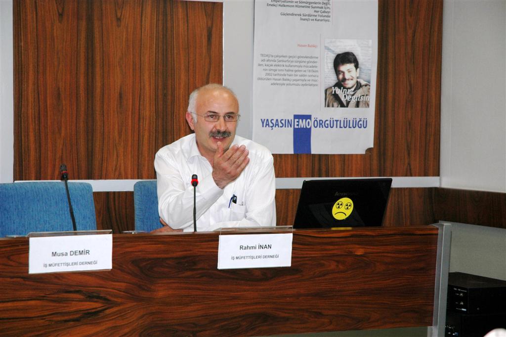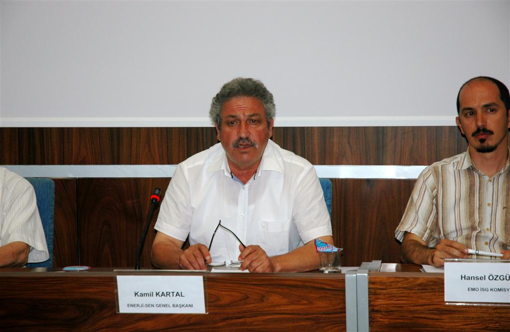 "Bu süreç 2003 yılında 4857 sayılı Kanun ile birlikte başladı. 4857 sayılı Kanunu temel alarak bir takım yönetmelikler çıkarılmış ve bu yönetmeliklerin toplam sayısı ise 23‘e çıkmıştır. Bunlardan bir tanesi de işçi sağlığı ve güvenliği mühendislerinin çalışmalarına esas teşkil eden bir yönetmeliktir. Bu yönetmelikte bir takım uygunsuzlukların, hukuksuzlukların bulunması nedeni ile Türk Tabipler Birliği ve TMMOB davalar açmış ve bu davalar neticesinde bu yönetmelik iptal edilmiştir. Arkasından bir takım değişiklikler yapılarak, tekrar çıkarılmış, yine dirençle karşılaşılınca bu kez yasalarda değişiklikler yapılarak, kendilerini haklı duruma getirip, açılan davaları önleme çalışmıştır. Bundan da tam netice alamayan hükümet, bu kez de karşımıza yeni bir kanun tasarısı ile geldi."