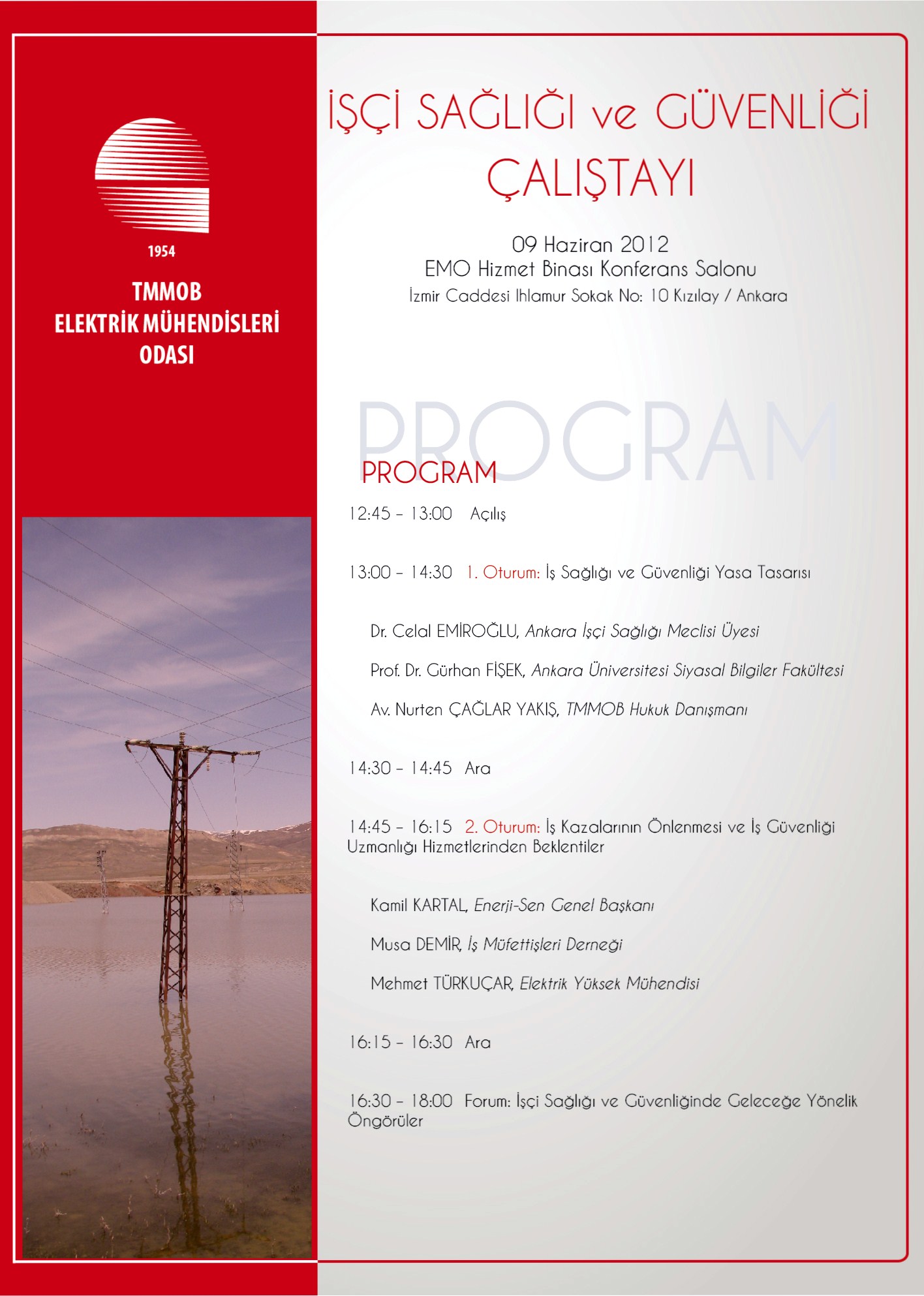 Elektrik Mühendisleri Odası (EMO), 9 Haziran 2012 tarihinde `İşçi Sağlığı ve Güvenliği Çalıştayı` düzenledi. EMO`nun meslek alanlarında yaşanan piyasalaştırma faaliyetleri ile birlikte yaşanmaya başlanan ölümlü kazaların iş katliamlarına dönüştüğü vurgulanan Çalıştay`da, `İş Sağlığı ve Güvenliği Yasa Tasarısı` ile konunun tamamen sermayenin inisiyatifine bırakılacağına dikkat çekildi.