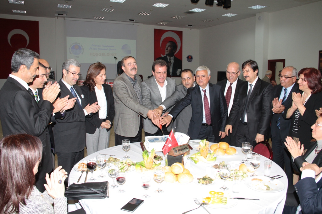 Coşkuyla gerçekleştirdiğimiz EMO 59. Yıl Yemeği, Şube Başkanı Seyfettin ATAR‘ın " İlk Genel Kurulu`nu 26 Aralık 1954 tarihinde gerçekleştiren Elektrik Mühendisleri Odası (EMO), kuruluşunun 59. yılını mesleki ve toplumsal mücadelesini sürdürme kararlılığı içinde kutluyor. Mühendislik mesleğinin gelişimi ve bilimin kamu yararına kullanılmasında öncülük yapan EMO, önümüzdeki yıllarda da TMMOB ve bağlı odaları ile birlikte kamu yararını temel alarak bilimsel özgürlüğü rehber edinen bir anlayış içerisinde, onurlu yürüyüşüne ve dik duruşuna devam edecektir" sözleriyle başladı. Başkan ATAR sözlerine "EMO olarak inanıyoruz ki; geçmişten bugüne ve geleceğe üretim ve sanayileşmeyi çevreye ve doğaya karşı sorumluluk bilinciyle kavramak; insanların enerjiye erişim, haberleşme, ulaşım, barınma ve beslenme gereksiniminin sosyal bir hak olarak toplumsal hukuk ile çözülmesini talep etmek ideolojik bir tercihtir. İşte EMO, bilimi, teknolojiyi bu anlayış ile kavramaktır. Odamız önümüzdeki dönemde de daha çok politika yapmaya, bilimi ve tekniği halkın hizmetine daha çok sunmak için kendi meslek alanlarımızdan çalışmaya devam edecektir." diyerek devam etti. Atar konuşmasını "60. kuruluş yılında mühendislik mesleğinin gelişimi ve bilimin kamu yararına kullanılmasında öncülük yapan EMO, önümüzdeki yıllarda da TMMOB ve bağlı odaları ile birlikte toplumsal muhalefetin odağında yer alarak, onurlu yürüyüşüne ve dik duruşuna devam edecektir." diyerek tamamladı. Başkan Atar‘ın konuşmasının ardından sahneyi Mersin CHP Milletvekili Vahap Seçer aldı. Vahap Seçer‘in konuşmasını tamamladıktan sonra mesleğinde 25,40 ve 50 yılını dolduran üyelerimize belge ve plaketleri verildi. Ayrıca önceki dönemlerde şubemizi temsilcilikten şube olmaya taşıyan üyemiz ve şube başkanlarımıza da plaketleri verildi. Şubemizin en kıdemli üyesi de plaketini alırken, aramıza katılın son 5 üyemizde ödüllerini aldılar. Yapılan törenin ardından aramızdan ayrılan üyelerimizde saygıyla anıldı. Gecemiz belge ve plaket törenin ardından Türk Halk Müziği Sanatçısı Ufuk BAKIR‘ın verdiği mini konser ile devam etti. Verilen konser ile birlikte gecemize katılan üye ve konuklarımızın coşkusu ile 59. Yıl pastamız kesildi. Ardından yapılan çekiliş ile üyelerimize hediyeleri verildi. Gecemiz Türk Sanat Müziği Ses Sanatçısı İbrahim ÖZBERK‘in verdiği mini konser ile son buldu