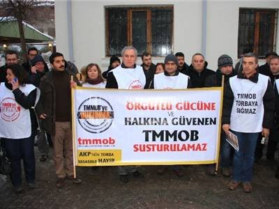 Türk Mühendis ve Mimar Odaları Birliği (TMMOB) Eskişehir İl Koordinasyon Kurulu (İKK) üyeleri, Eskişehir İl Sağlık Müdürlüğü önünde basın açıklaması yaparak, torba yasaları eleştirdi. Üyeler adına açıklama yapan TMMOB Eskişehir İl Koordinasyon Kurulu Sekreteri Neşet Aykanat, içinde TMMOB Yasası‘ndaki değişikliklerin de yer aldığı bir torba yasanın Çevre ve Şehircilik Bakanlığı tarafından hazırlandığını hatırlatarak, bunun dışında İş Sağlığı ve Güvenliği Kanunu ile Bazı Kanun ve Kanun Hükmünde Kararnamelerde Değişiklik Yapılmasına Dair Kanun Tasarısı ismiyle bir başka torba yasanın da TBMMM gündeminde olduğunu aktardı. Siyasal İktidarın son torba yasalarla kamusal alanlara el koyma ve rant süreçlerinin önündeki son engelleri de kaldırma hazırlığında olduğunu öne süren Aykanat, "Ak Parti iktidarının gündeme getirdiği son iki torba yasa imar, yapılaşma, meslek alanları ve çalışma hayatında önemli değişiklikler getiriyor" dedi. Toplamda 24 yasada değişiklik öngören taslaklarla, ekonomik süreklilik adına öncelikle inşaat sektöründeki düzenlemelerle rant sağlamak istendiğini de iddia eden Aykanat, "Yapı denetimi alanında özel projeler, denetim kapsamı dışına çıkarılıyor. Yapı denetim kuruluşlarının yapısı değiştirilerek yıkım, riskli yapı tespiti, her türlü proje, yapı denetimi ve hatta işveren adına iş takibi yapabilecek teknik müşavirlik kuruluşlarıyla meslek alanlarında tekelleşme meydana getiriliyor, mühendislik projeleri olmadan yapı ruhsatı düzenlemesinin önü açılıyor" diye konuştu. "PEK ÇOK YER ÖZELLEŞTİRİLEBİLECEK" Neşet Aykanat, söz konusu torba yasalarla doğal ve tarihi sit alanları, ormanlar, meralar, milli parklar, kıyılar ve tarım alanlarının yapılaşmaya açılabileceğini ifade ederek, şöyle konuştu: "Kentlerdeki eğitim ve sağlık alanları, parklar ve hatta mezarlıklar dahi özelleştirilebilecek, imar hakkı transferi getirilerek vatandaşların tapulu mülklerine para ödenmeden el koyulabilecek. Kısacası, AKP torba yasa ile kentsel rantı tek merkezden yandaşlarına dağıtmak üzere ‘parası olana imar hakkı‘ getiriyor. Tabi ki bu torbanın içinde AKP‘nin rant politikalarının önünde en büyük engel olarak gördüğü TMMOB da var. Unutmasınlar ki TMMOB‘yi yok etmeye çalışsalar da TMMOB her yerde. TMMOB Soma‘da, Ermenek‘te, Zonguldak‘ta; TMMOB Atatürk Orman Çiftliği‘nde, bu ülkenin toprağının altını üstüne getirenlere karşı Kazdağları‘nda, kentte, kırda bu ülke insanının yaşadığı her yerde."