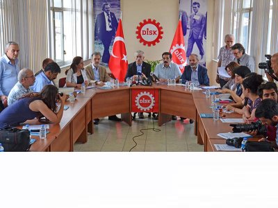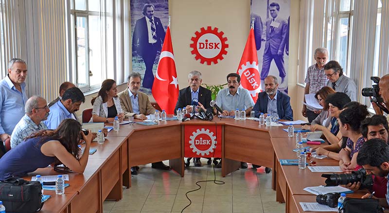 DİSK, KESK,TMMOB ve TTB; başta Başbakan, İçişleri Bakanı ve İstanbul Valisi olmak üzere, 1 Mayıs’ta yurttaşların haklarını kullanmasını zorla engelleyerek suç işleyen, İstanbul halkının en temel özgürlüklerini engelleyerek işkence çektiren kamu görevlileri hakkında bugün suç duyurusunda bulundu. 22 Haziran 2015 günü DİSK binasında gerçekleştirilen basın toplantısına TMMOB Başkanı Mehmet Soğancı ve Şubelerimizin üye ve yöneticileri katıldı.