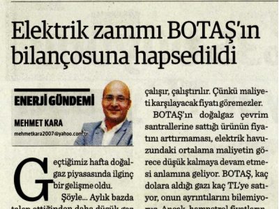 Geçtiğimiz hafta doğalgaz piyasasında ilginç bir gelişme oldu. Şöyle... Aylık bazda talep ettiğinden daha düşük gaz tüketenler ile daha fazla tüketenlerin yol açtığı dengesizliğin giderildiği dengeleme piyasasında uygulanan fiyata yüzde 20 zam yapıldı. İlginçlik bunda değil tabii. Bugüne kadar dengeleme gazı ile mesken, sanayi ve elektrik üretim santrallerine uygulanan tarifeler aynı anda arttırılırdı. Bu kez öyle olmadı. Piyasa oyuncuları ise dengeleme gazı fiyatındaki artışı görünce, tarifelerin de artacağına inanmıştı. Her neyse, bu BOTAŞ‘ın, ya da enerji-ekonomi yönetiminin tercihidir. Biz bu tercihin sonuçlarına değinmeye çalışalım. Sıcaklıkların zirve yaptığı Temmuz ve Ağustos ayları, elektrik talebinin de yükseldiği bir dönemdir. Bu dönemde sisteme verilen elektriğin ortalama üretim maliyetleri de yükselir ister istemez. Çünkü talebin düşük olduğu dönemlerde, diğer kaynaklara oranla daha yüksek bir maliyetle üretim yapabilen doğalgaz çevrim santralleri ister istemez, daha az çalışır, çalıştırılır. Çünkü maliyeti karşılayacak fiyatı göremezler. BOTAŞ‘ın doğalgaz çevrim santrallerine sattığı ürünün fiyatını arttırmaması, elektrik havuzundaki ortalama maliyetin görece düşük kalmaya devam etmesi anlamına geliyor. BOTAŞ, kaç dolara aldığı gazı kaç TL‘ye satıyor, onun ayrıntılarını bilemiyoruz. Ancak, hampetrol fiyatlarındaki yükselişe endeksli olduğu için ithalat fiyatları artan doğalgazın, kurların da yükseldiği böylesi bir dönemde arttırılmaması, BOTAŞ‘ın kar-zarar hesabını değiştirecek. BOTAŞ‘ın gaz tarifelerini yükseltmemesi aslında ortalama elektrik üretim maliyetlerinin yükselmesini önlemiş oluyor. Öyle ya, zaten mevcut şartlarda bile elektrik satış tarifelerinde yukarı yönlü bir değişiklik ihtiyacı varken, elektrik üretimi amaçlı yakılacak gazın fiyatlarını arttırmamak anlaşılabilir bir tercihtir. Ama orta ve uzun vadede doğalgaz ithalat fiyatları gerilemediği ya da döviz kurları keskin bir düşüş göstermediği takdirde doğalgaz satış tarifelerinde artış ihtiyacı devam edecek. Bu yüzden, elektrik üretim maliyetlerini arttırmama tercihinin maliyeti, BOTAŞ‘ın bilançosuna yüklenmiş oldu. Yani elektrik zammı, en azından bir kısmı tabiri caizse BOTAŞ hapishanesine kilitlendi... En azından şimdilik...