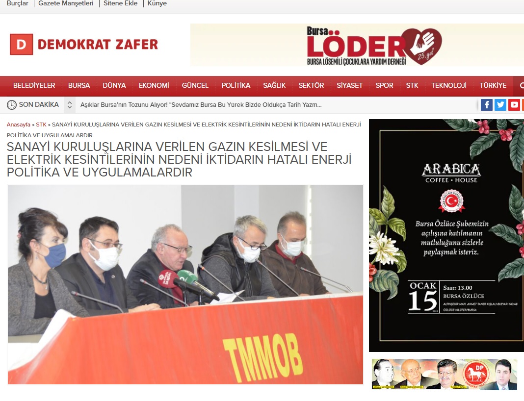 SANAYİ KURULUŞLARINA VERİLEN GAZIN KESİLMESİ VE ELEKTRİK KESİNTİLERİNİN NEDENİ İKTİDARIN HATALI ENERJİ POLİTİKA VE UYGULAMALARDIR