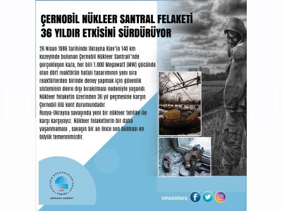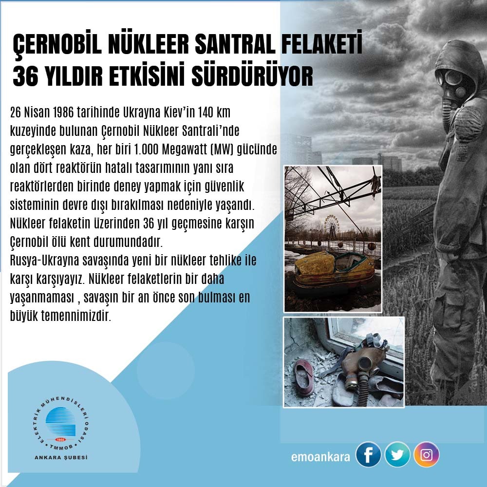 26 Nisan 1986 tarihinde Ukrayna Kiev`in 140 km kuzeyinde bulunan Çernobil Nükleer Santrali`nde gerçekleşen kaza, her biri 1.000 Megawatt (MW) gücünde olan dört reaktörün hatalı tasarımının yanı sıra reaktörlerden birinde deney yapmak için güvenlik sisteminin devre dışı bırakılması nedeniyle yaşandı. Nükleer felaketin üzerinden 36 yıl geçmesine karşın Çernobil ölü kent durumundadır. Rusya-Ukrayna savaşında yeni bir nükleer tehlike ile karşı karşıyayız. Nükleer felaketlerin bir daha yaşanmaması, savaşın bir an önce son bulması en büyük temennimizdir.