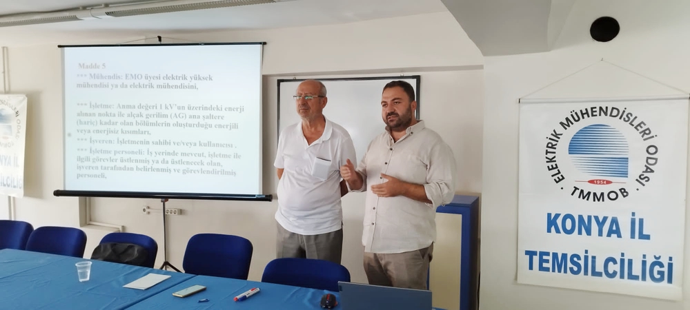 Meslek İçi Sürekli Eğitim Merkezi (MİSEM) kapsamında Elektrik Tesislerinde Topraklamalar Eğitimi EMO Konya İl Temsilciliğinde 7-8-9 Ağustos 2023 tarihlerinde gerçekleştirildi. Eğitimin açılışını gerçekleştiren EMO Konya İl Temsilcisi Özkan Keskin EMO`nun ve Konya İl Temsilcilğinin faaliyetleri hakkında kısa bir bilgilendirme yaparak, katılımcılara `hoş geldiniz` dedi. MİSEM eğitmeni üyemiz Elektrik Mühendisi Hasan Aktaş tarafından verilen eğitime üç gün boyunca oniki üyemiz katılım sağladı.