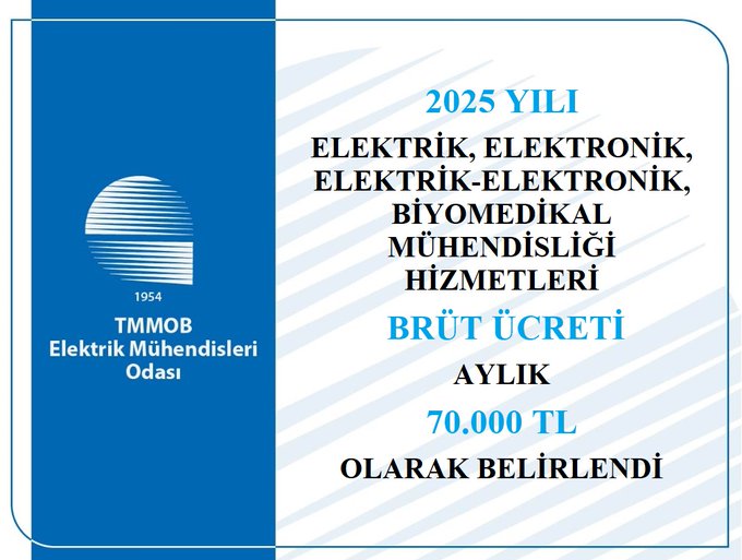 2025 YILI ELEKTRİK, ELEKTRONİK, ELEKTRİK-ELEKTRONİK, BİYOMEDİKAL MÜHENDİSLİĞİ HİZMETLERİ BRÜT ÜCRETİ AYLIK 70.000 TL OLARAK BELİRLENDİ