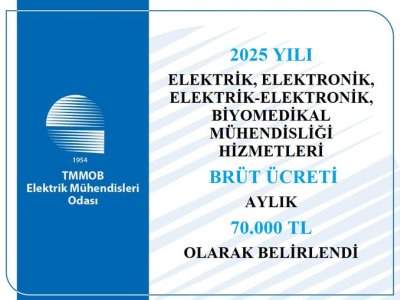 Elektrik Mühendisleri Odası (EMO) Yönetim Kurulu, Elektrik, Elektronik, Elektrik-Elektronik, Biyomedikal Mühendisliği hizmetleri ücretinin 2025 yılı için brüt 70.000 TL/ay olarak belirlenmesine karar verdi. Serbest mühendislik bürolarında ücretli çalışan üyeler için de bu ücret uygulanacak.