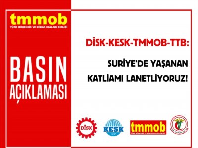 DİSK, KESK, TMMOB ve TTB, 11 Mart 2025 tarihinde ortak bir basın açıklaması yaparak `Suriye’de Yaşanan Katliamı Lanetliyoruz!` dediler.