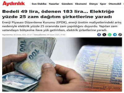 Enerji Piyasası Düzenleme Kurumu (EPDK), enerji üretim maliyetlerindeki artış nedeniyle elektrik yüzde 25 oranında zam yapıldığını duyurdu. Yapılan zam vatandaşın bütçesine ilave yük getirirken, elektrik şirketlerine yaradı.