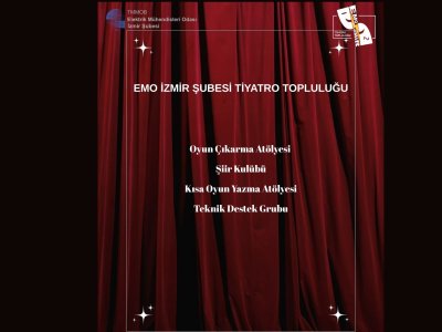 Elektrik Mühendisleri Odası (EMO) İzmir Şubesi Tiyatro Topluluğu, geçen sezonunda sergilediği “12 Öfkeli” oyunuyla büyük beğeni toplamasının ardından yeni sezon için kayıt almaya başladı. 2025–2026 sezonunda oyunculuk, şiir, oyun yazarlığı ve sahne arkası çalışmalarıyla çok daha kapsamlı bir programla üyelerini ve yakınlarını sahneye davet ediyor. Topluluk çalışmalarına katılmak isteyen üyelerimiz yazımızın devamında yer alan formu kullanarak başvurabilirler.