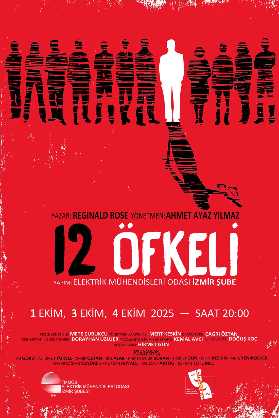 İlk sezonunda sahnelediği "12 Öfkeli" adlı oyunla izleyicilerin büyük beğenisini kazanan, gösterimleri yoğun ilgi gören ve kurumsal tiyatro topluluğu olma yolunda önemli bir adım atan EMO İzmir Şubesi Tiyatro Topluluğu, 2025-26 sezonunda da gösterimlerine devam ediyor.