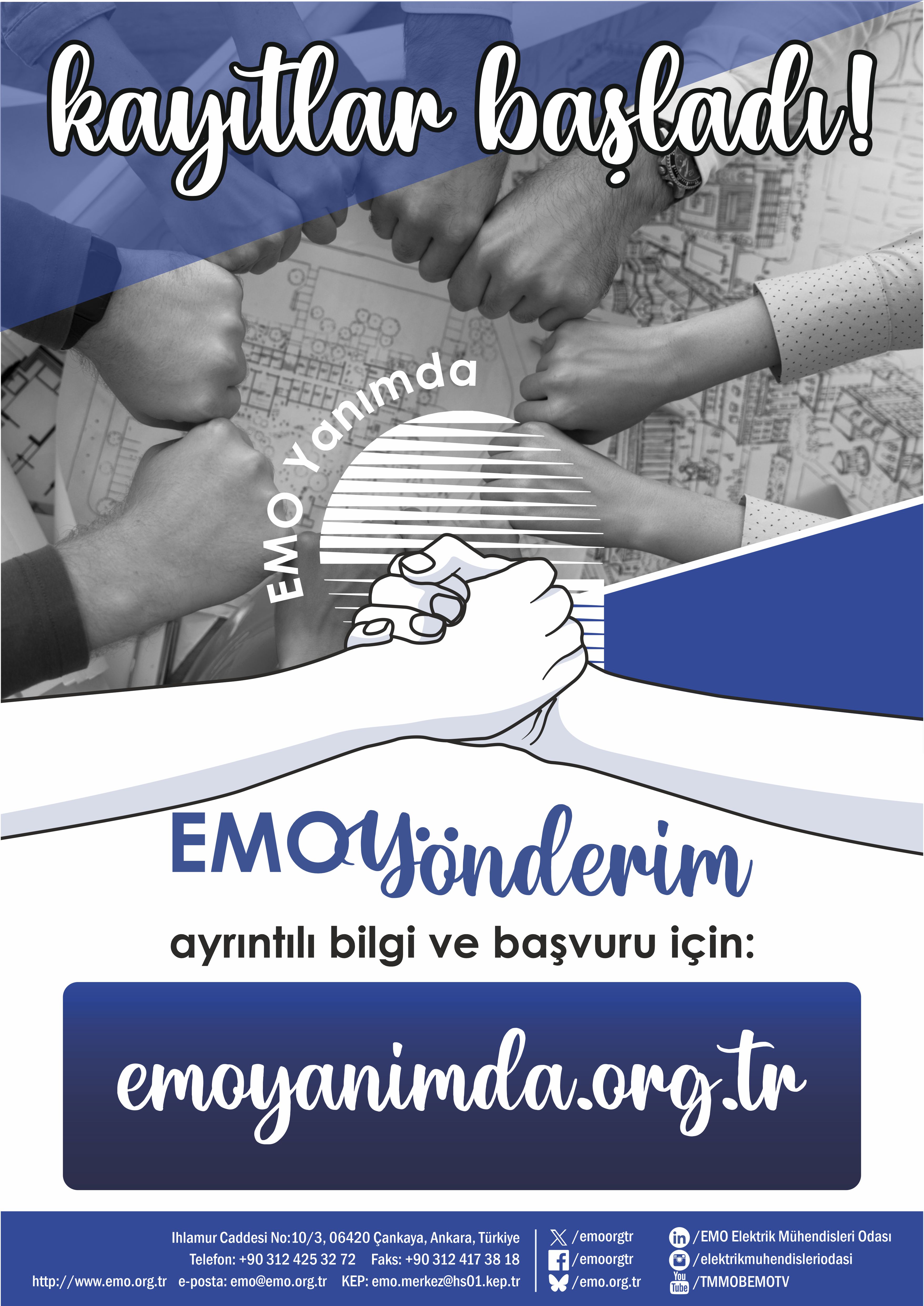 Elektrik Mühendisleri Odası (EMO), meslektaş dayanışmasını büyütmek, EMO-Gençlerin ve yeni mezun üyelerin meslek yaşamına örgütlü biçimde hazırlanmasını sağlamak amacıyla EMO Yanımda Programını hayata geçirmektedir. Programın ilk ayağı olan EMO Yönderim’in başvuruları, genç mühendis adaylarını deneyimli meslektaşlarımızla buluşturmak üzere emoyanimda.org.tr adresi üzerinden 6 Ekim 2025 tarihine kadar gerçekleştirilebilir.