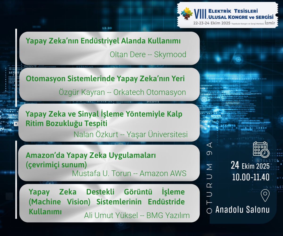 ETUK 2025 kapsamında 24 Ekim 2025 Cuma günü düzenlenen 9A Oturumu, yapay zeka uygulamalarına odaklanan sunumlarla gerçekleştiriliyor.