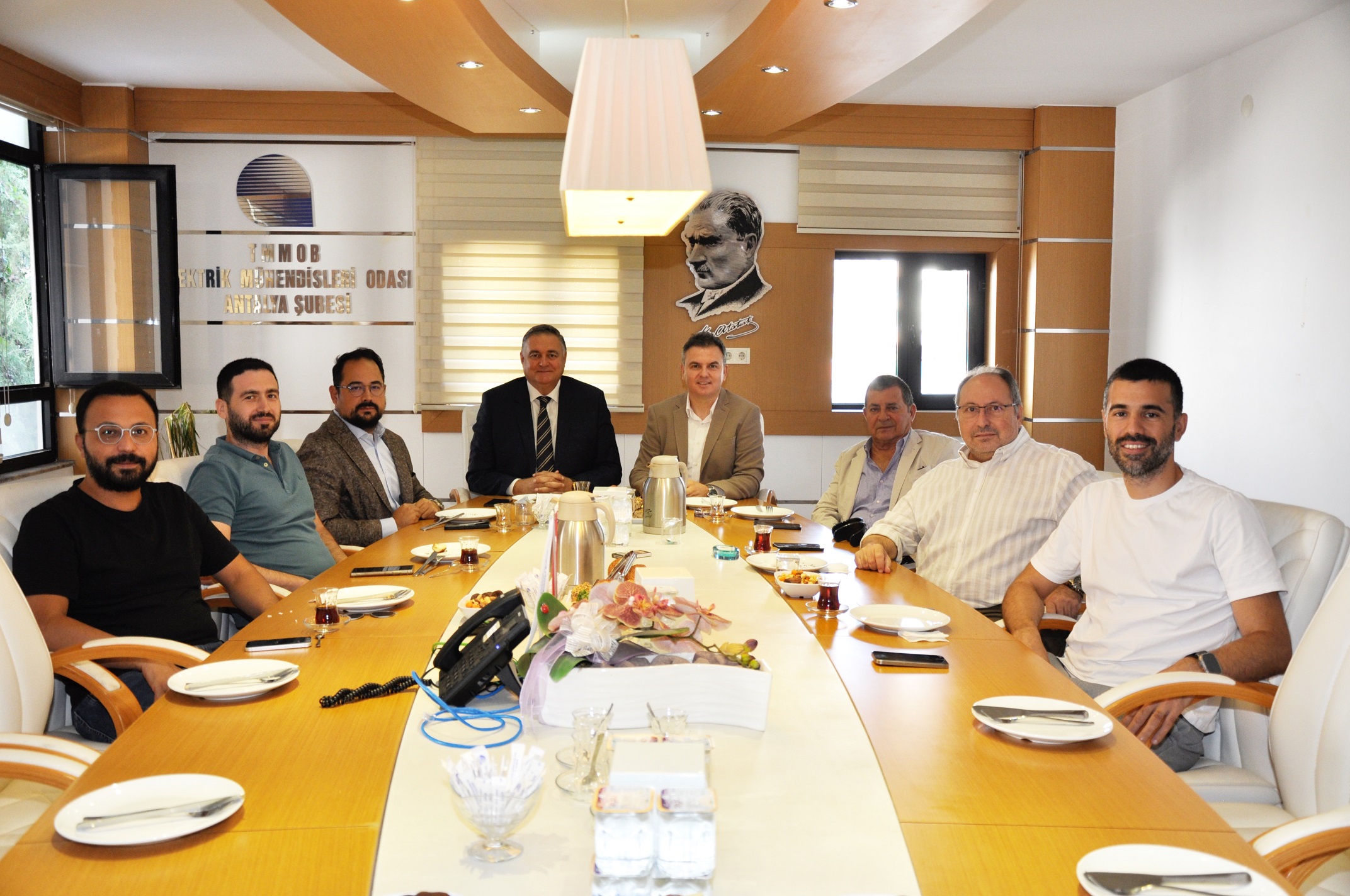 Antalya Organize Sanayi Bölgesi Başkanı Hasan Ali Gönen,Başkan Vekili Yiğit Budak,Yönetim Kurulu Üyesi Ahmet Kasapoğlu ve OSB Müdürü,aynı zamanda geçmiş dönem Şube Başkanımız İlhan Metin 01.10.2025 tarihinde odamızı ziyaret ederek yönetim kurulumuz ile bir görüşme gerçekleştirdi.Şubemiz adına Başkanımız Şaban Tat,Başkan Yardımcımız Durali Çakır,Şube Saymanımız Seyit Çağrı Yıldırım ve Yönetim Kurulu Üyemiz İbrahim Kaymaz katıldı. Görüşmede,Antalya OSB’nin enerji gündemi,mevcut GES yatırımlarındaki kapasite sorunları,sorumluluk alanları ve önümüzdeki dönemde karbon emisyonlarının azaltılmasına yönelik atılacak adımlar ele alındı.Nazik ziyaretlerinden ötürü Antalya OSB Yönetimine teşekkür ederiz.
