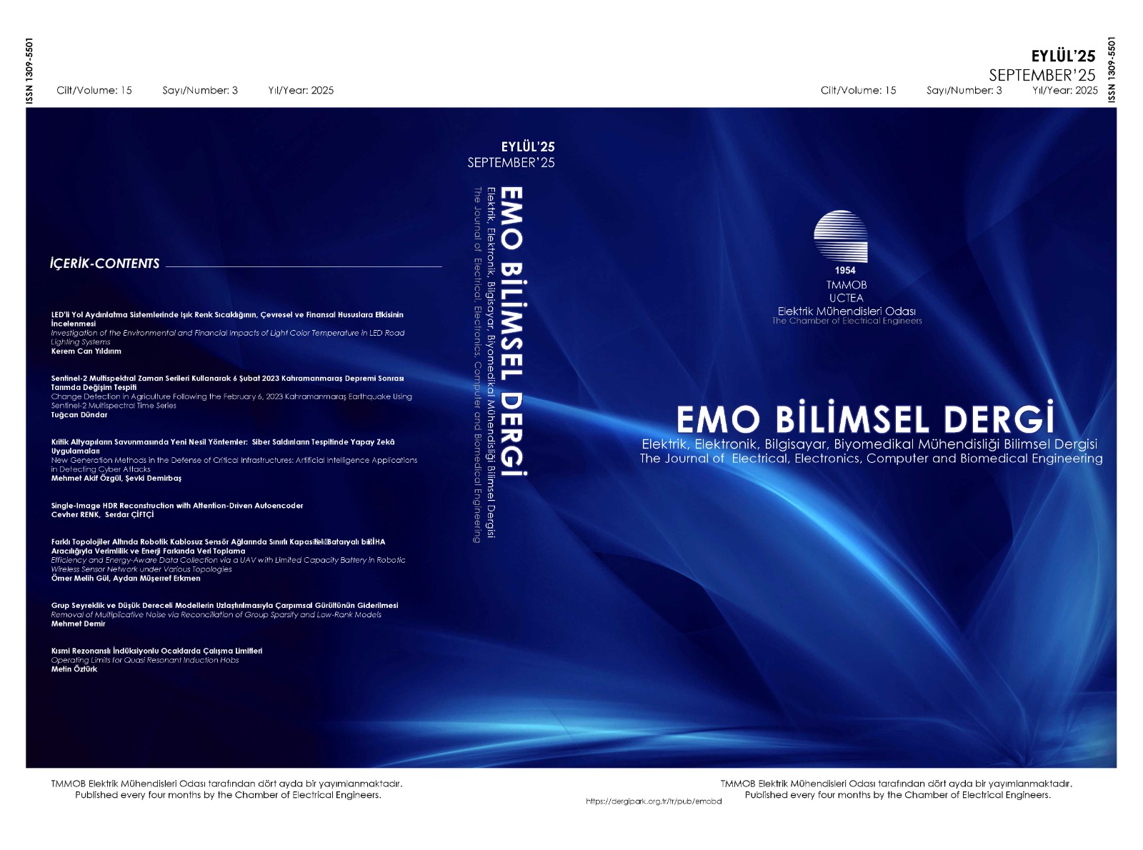 Elektrik Mühendisleri Odası tarafından çıkarılan hakemli akademik yayın organı EMO Bilimsel Dergi’nin Eylül 2025 sayısı yayımlanmıştır. Dergi bu sayısında, enerji verimliliğinden yapay zekâ uygulamalarına, kritik altyapı güvenliğinden tarımsal üretimde doğal afet sonrası değişim analizlerine kadar geniş bir konu yelpazesinde özgün bilimsel araştırmalara yer vermektedir.