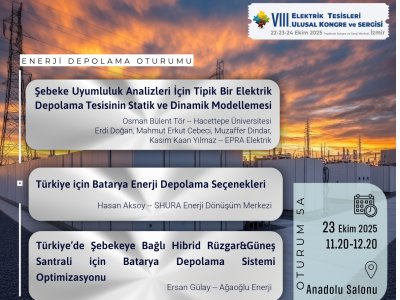 VIII. Elektrik Tesisleri Ulusal Kongre ve Sergisi (ETUK 2025) kapsamında 23 Ekim 2025 Perşembe günü düzenlenen 5A Oturumu, enerji depolama teknolojilerine ilşkin sunumlarla gerçekleştiriliyor.