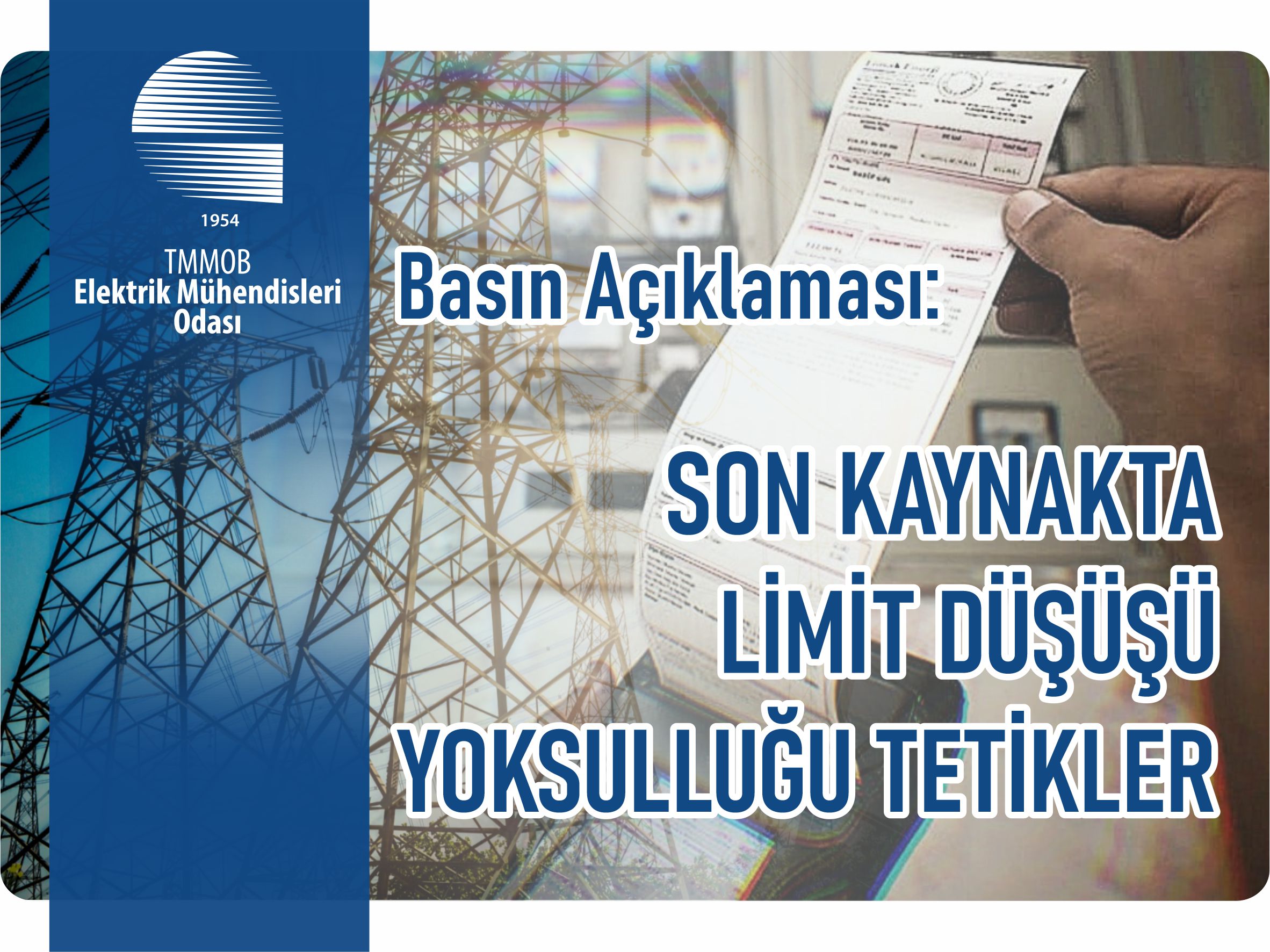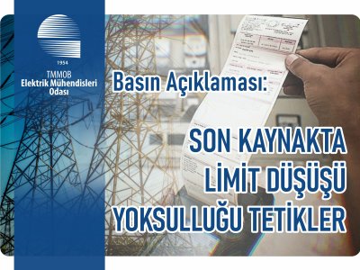 Elektrik Mühendisleri Odası, son kaynak tarifesinde yıllık elektrik tüketim limitinin hanelerde 3 bin kWh’a düşürülmesine yönelik hazırlıklara ilişkin basın açıklaması yaptı. Asgari tüketime yakın milyonlarca haneyi etkileyecek değişiklik “Spekülatif piyasa dalgalarının yükünü yurttaşa yüklemek açıkça kamu yararı taşımamaktadır” sözleriyle değerlendirildi. Dar gelirli ailelerin enerjiye erişim hakkının kısıtlanacağı uyarısı yapılan açıklamada, sosyal tarife uygulamasına dönülmesi çağrısı yinelendi.