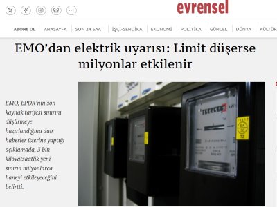 "Gizli zam ve kamu hizmetine aykırılık" EMO, geçtiğimiz yıl sonu yürürlüğe giren 5 bin kWh sınırıyla ilgili olarak Danıştay`a dava açtıklarını hatırlatarak, "Dava henüz sonuçlanmamışken şimdi aynı konuda yeni bir adım atılması, yurttaşın piyasa insafına bırakıldığını gösteriyor. Bu bir gizli zammın ötesinde, kamusal hizmet anlayışına da aykırıdır" dedi.