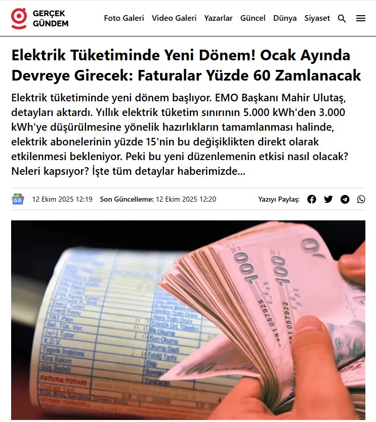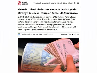www.gercekgundem.com Yıllık elektrik tüketim sınırının 5.000 kWh‘den 3.000 kWh‘ye düşürülmesine yönelik çalışmalar sürüyor. EMO Başkanı Mahir Ulutaş, Enerji Bakanlığı‘nın "devlet destek veriyor" açıklamasının doğru olmadığını ifade etti.
