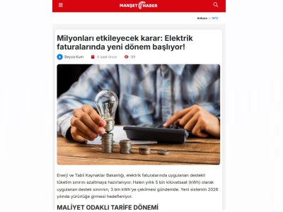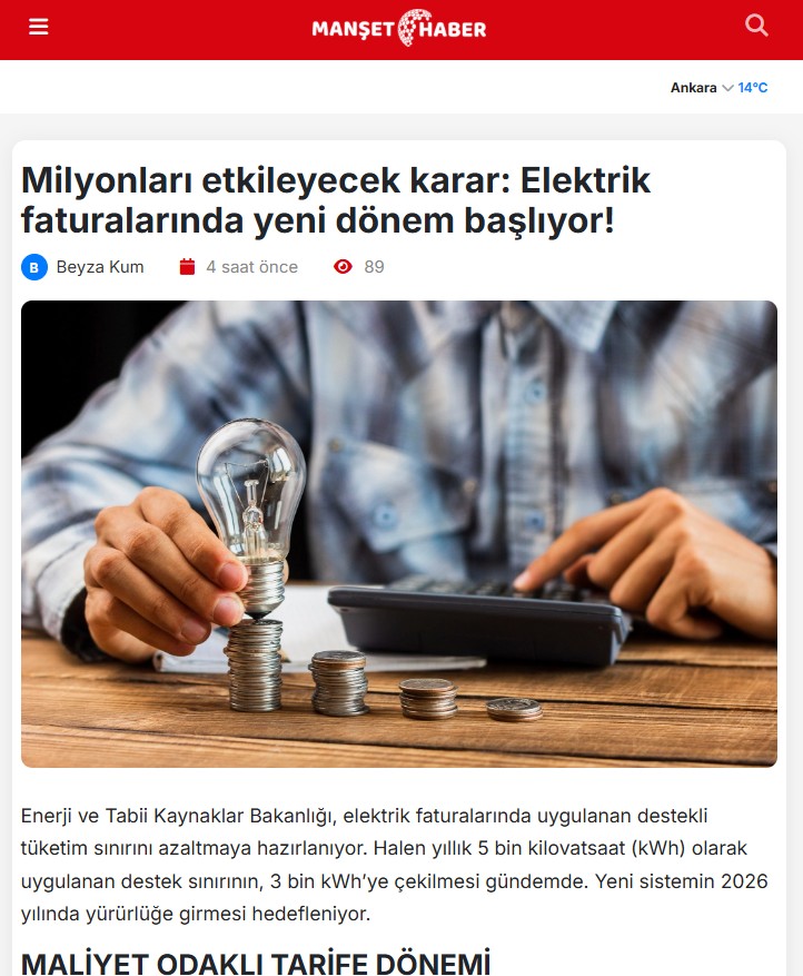Yeni sistemin 1 Ocak 2026`da yürürlüğe girmesi ve düzenlemelerin Şubat 2026 faturalarına yansıması düşünülüyor.