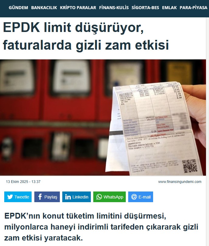 EPDK’nın konut tüketim limitini düşürmesi, milyonlarca haneyi indirimli tarifeden çıkararak gizli zam etkisi yaratacak.