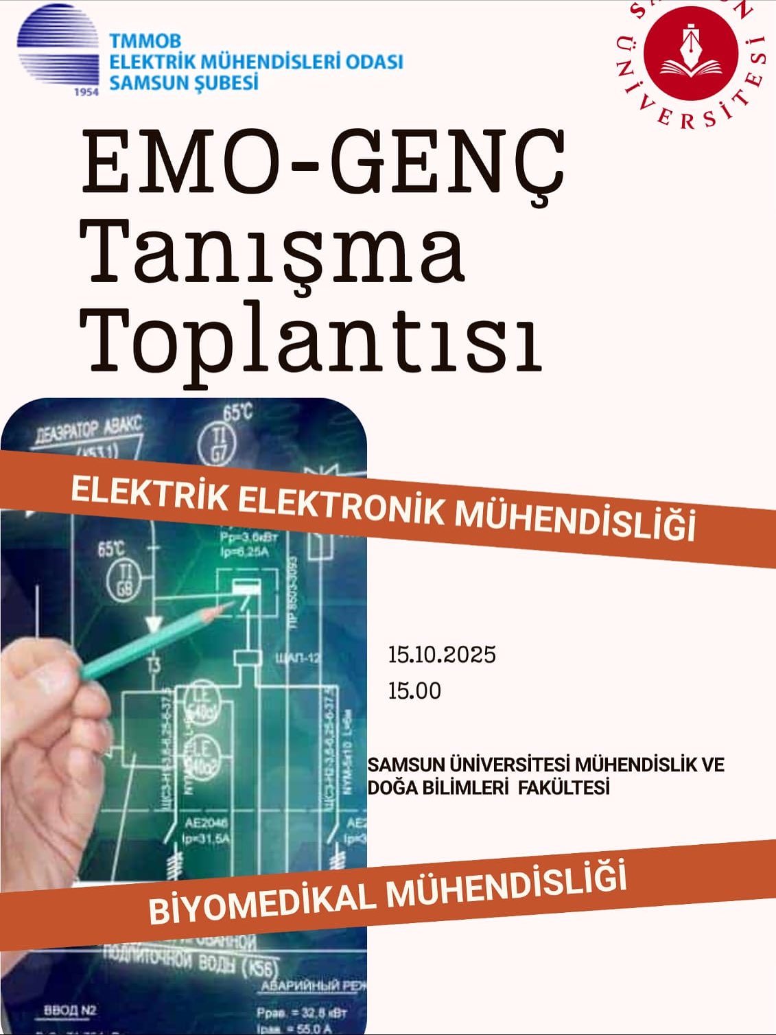 Samsun Üniversitesi Mühendislik ve Doğa Bilimleri Fakültesi Elektrik-Elektronik Mühendisliği ile Biyomedikal Mühendisliği Bölümlerini ziyaret ederek, yeni öğretim yılına başlayan 1. sınıf öğrencisi geleceğin meslektaş adaylarımızla 15 Ekim 2025 tarihinde tanışma toplantısı gerçekleştirildi.