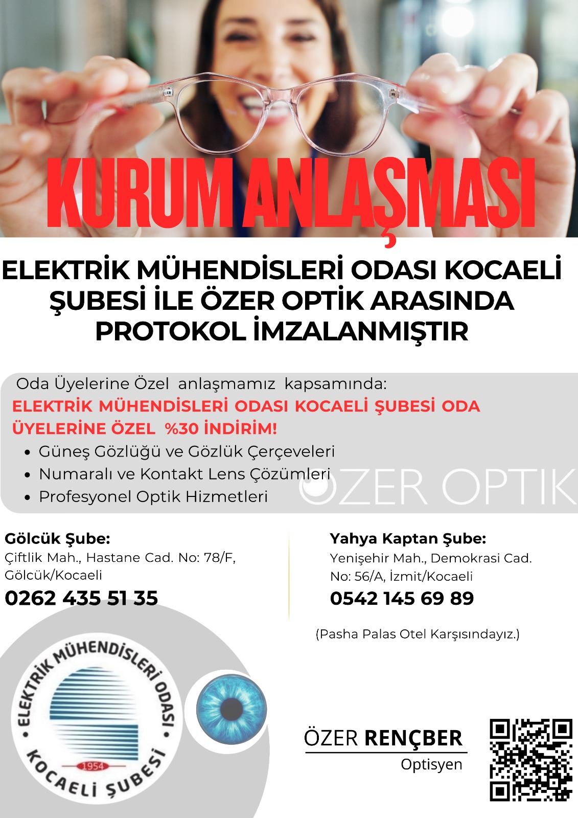 Protokol kapsamında, «Özer Optik» tarafından Oda Üyelerine özel hizmet bedelleri üzerinden %30 indirim hakkı tanındığı bir protokol anlaşması imzalandı.