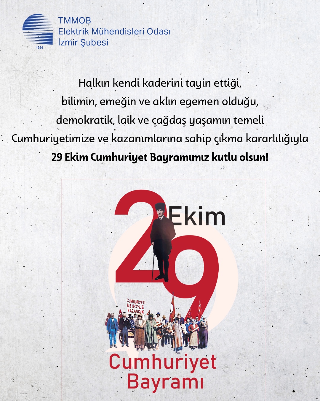 Halkın kendi kaderini tayin ettiği, bilimin, emeğin ve aklın egemen olduğu, demokratik, laik ve çağdaş yaşamın temeli Cumhuriyetimize ve kazanımlarına sahip çıkma kararlılığıyla 29 Ekim Cumhuriyet Bayramımız kutlu olsun!