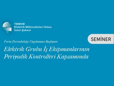 Elektrik Mühendisleri Odası (EMO) İzmir Şubesi, form zorunluluğu uygulaması başlayan elektrik grubu iş ekipmanlarının periyodik kontrollerine ilişkin bir seminer dizisi düzenleyecektir. Kasım ayı boyunca gerçekleştirilecek dört seminerde; “Yangın Algılama ve Uyarı Sistemleri”, “Trafo Merkezleri”, “Yıldırımdan Korunma” ve “Elektrik ile Topraklama Tesisatlarının` periyodik kontrolleri konuları ele alınacaktır. Seminer takvimine yazımızın devamından ulaşabilirsiniz.