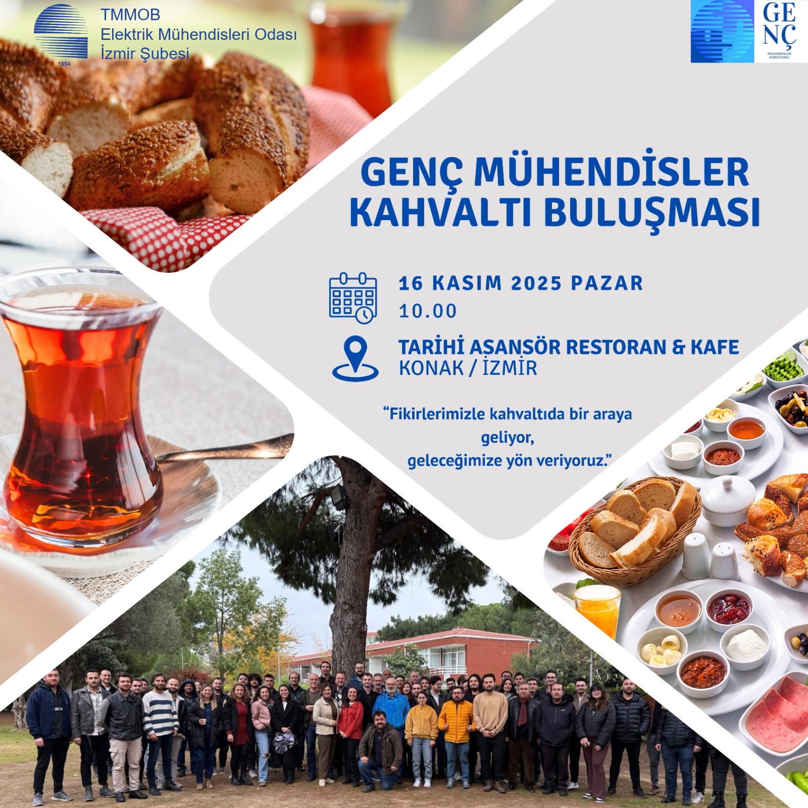 Elektrik Mühendisleri Odası (EMO) İzmir Şubesi Genç Mühendisler Komisyonu, son 5 yılda mezun olmuş genç meslektaşlarımıza yönelik olarak ücretsiz kahvaltı buluşması düzenleyecektir. Genç meslektaşlarımız, 16 Kasım 2025 Pazar sabahı Tarihi Asansör Restoran Kafe (Konak-İzmir)’de gerçekleştirilecek buluşma için yazımızın devamında yer alan bağlantıda kayıt yaptırabilirler.
