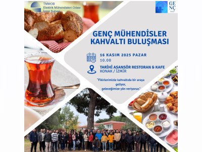 Elektrik Mühendisleri Odası (EMO) İzmir Şubesi Genç Mühendisler Komisyonu, son 5 yılda mezun olmuş genç meslektaşlarımıza yönelik olarak ücretsiz kahvaltı buluşması düzenleyecektir. Genç meslektaşlarımız, 16 Kasım 2025 Pazar sabahı Tarihi Asansör Restoran Kafe (Konak-İzmir)’de gerçekleştirilecek buluşma için yazımızın devamında yer alan bağlantıda kayıt yaptırabilirler.