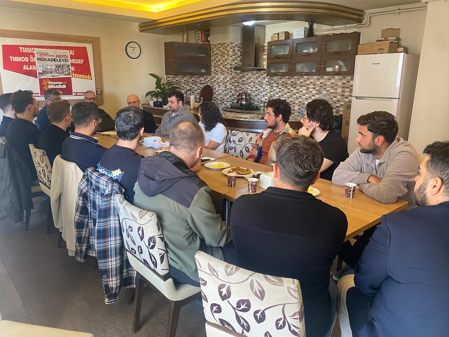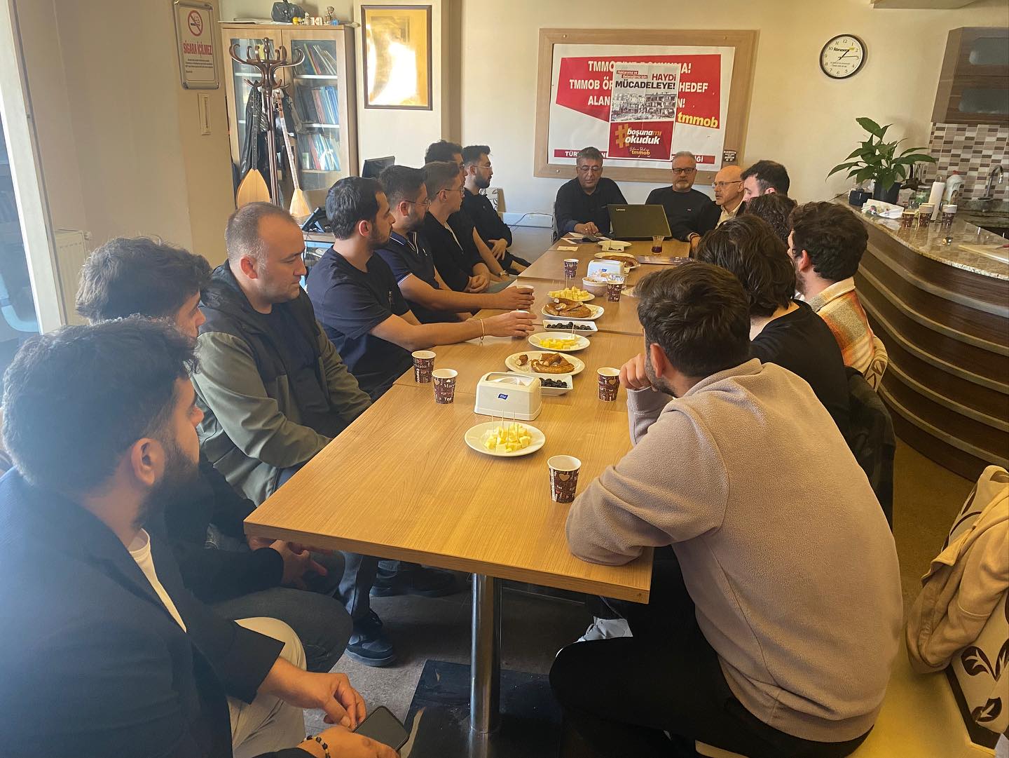 TMMOB ve EMO örgütlülüğü üzerine keyifli bir sohbet gerçekleştirdik; mesleğimizin güncel sorunlarını, genç meslektaşlarımızın EMO`dan beklentilerini ve gelecek döneme ilişkin çalışmalarımızı değerlendirdik. Verimli geçen buluşmamızın sonunda genç meslektaşlarımıza EMO rozetlerini takdim ettik. Katılım sağlayan genç meslektaşlarımıza, geçmiş dönem şube başkanlarımıza, yönetim kurulu üyelerimize ve şube çalışanlarımıza teşekkür eder; genç meslektaşlarımıza meslek hayatlarında başarılar dileriz.