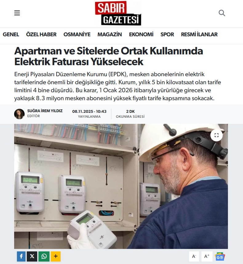 Ortak kullanım alanları da bu düzenlemeden etkilenecek. Apartman ve site sakinleri, asansör, aydınlatma gibi ortak kullanım için ödedikleri aidatlar üzerinden dolaylı şekilde zamdan etkilenebilecek.