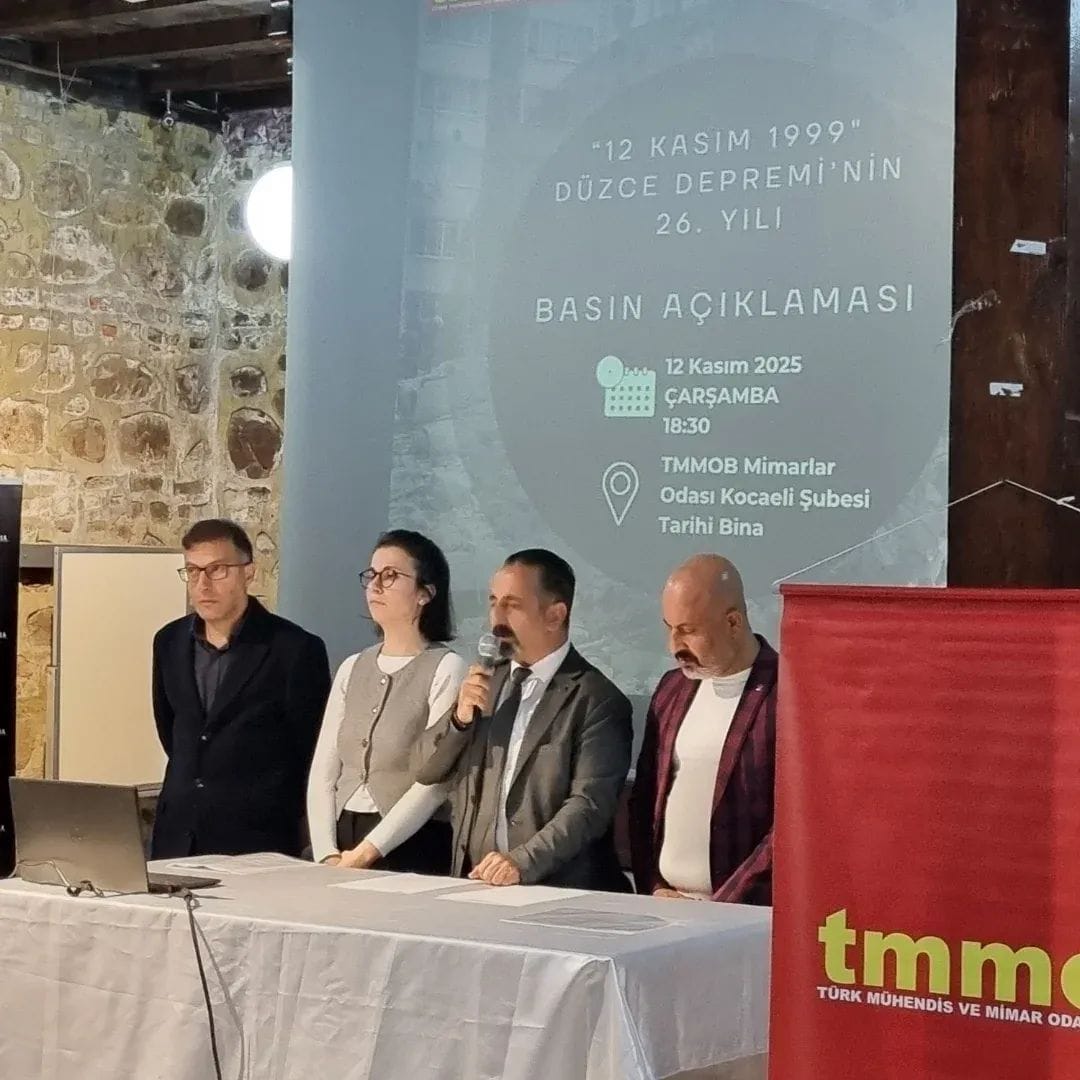 12 Kasım 1999 Düzce Depremi`nin 26. Yılı`nda, 12 Kasım Çarşamba günü saat 18.30`da TMMOB Mimarlar Odası Kocaeli Şubesi Tarihi Binada basın açıklaması gerçekleştirildi.
