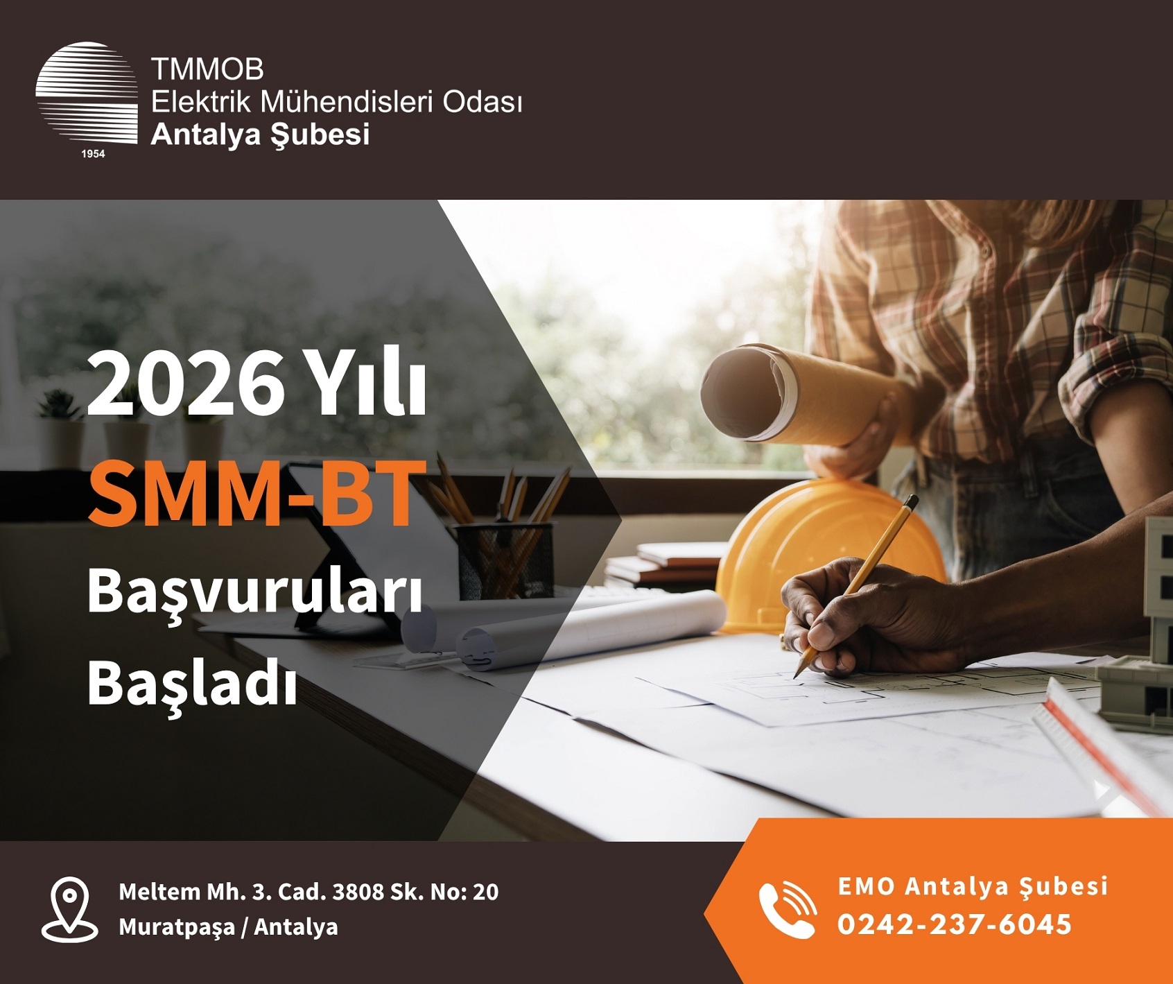 2026 SMM-BT belge yenileme başvuruları, kendi adına veya ortak olarak çalışan üyelerimiz için 17 Kasım 2025 tarihi itibariyle başlamış olup, 28 Şubat 2026 tarihine kadar devam edecektir. Ücretli olarak çalışan üyelerimiz için yenileme işlemlerinin 2026 yılı mühendis hizmeti asgari ücretinin belirlenmesinin ardından başlatılmasına karar verilmiştir. Bilindiği gibi, mevcut SMM-BT belgelerinin geçerliliği 31 Aralık 2025 tarihinde sona ermektedir. 2025 yılına ait belgeler ile 1 Ocak 2026 tarihinden itibaren herhangi bir işlem yapılmayacaktır. 28 Şubat 2026 tarihinden sonra yapılacak yenileme taleplerinde ise ilk çıkartma ücreti alınacaktır. İlgili kurumlar 01.01.2026 tarihinden itibaren 2025 yılına ait SMM-BT belgeleri ile işlem yapmamaktadırlar. SMM-BT belgesi yerine geçebilecek; üyemizin başvurusunu yapıp yenileme işlemlerinin devam ettiğini belirten herhangi bir yazı verilemeyeceğinden dolayı, yenileme işlemlerinin en kısa sürede yapılması gerekmektedir. SMM-BT belge başvurusu ödemesi ve aidat ödemesi için EMO Antalya Şubesi Banka Bilgileri: EMO Antalya Şubesi adına kayıtlı Türkiye İş Bankası Meltem Şubesi IBAN: TR26 0006 4000 0016 2170 0386 76 numaralı hesabı kullanabilirsiniz. Üyelerimiz Şubemizden/ Temsilciliklerimizden yapacakları ödemeler için kredi kartına taksitlendirme seçeneğini kullanabilirler. EMO Yönetim Kurulu`nun 10 Kasım 2025 tarih ve 49/50 sayılı toplantısında 2026 yılı SMM-BT belge bedellerinin aşağıdaki şekilde uygulanmasına karar verilmiştir. Ayrıca meslek hayatında ilk kez SMM ve BT belgesi çıkartacak olan üyelerimiz için, şirket bağlantı şekli kendi adına veya ortak olması halinde SMM ve BT İlk Çıkartma bedellerinde %50 indirim uygulanması kararı alınmıştır. | Belge Türü | 2026 Yılı | | SMM Belgesi (İlk Çıkartma) | 18.250,00 TL | | SMM Belgesi (Yenileme) | 9.000,00 TL | | BT Belgesi (İlk Çıkartma) | 23.500,00 TL | | BT Belgesi (Yenileme) | 10.000,00 TL | | Büro Tanıtım Belgesi (İlk Çıkartma) | 20.000,00 TL | | Büro Tanıtım Belgesi (Yenileme) | 12.000,00 TL | | SMMHB (Her belge için) | 22.500,00 TL | | 2026 Yılı Aidat (150,00 TL/ay) | 1.800,00 TL | SMM-BT Hizmet Belgelerini yenilemek üzere 2026 yılı için Odamızca istenen belgelerin listesine ekteki dosyalardan ulaşabilirsiniz. ÖNEMLİ NOT: SMM-BT belge yenilemelerinde 4A/4B SGK prim kontrolü 2025 yılının tamamı üzerinden kontrol edilecektir.