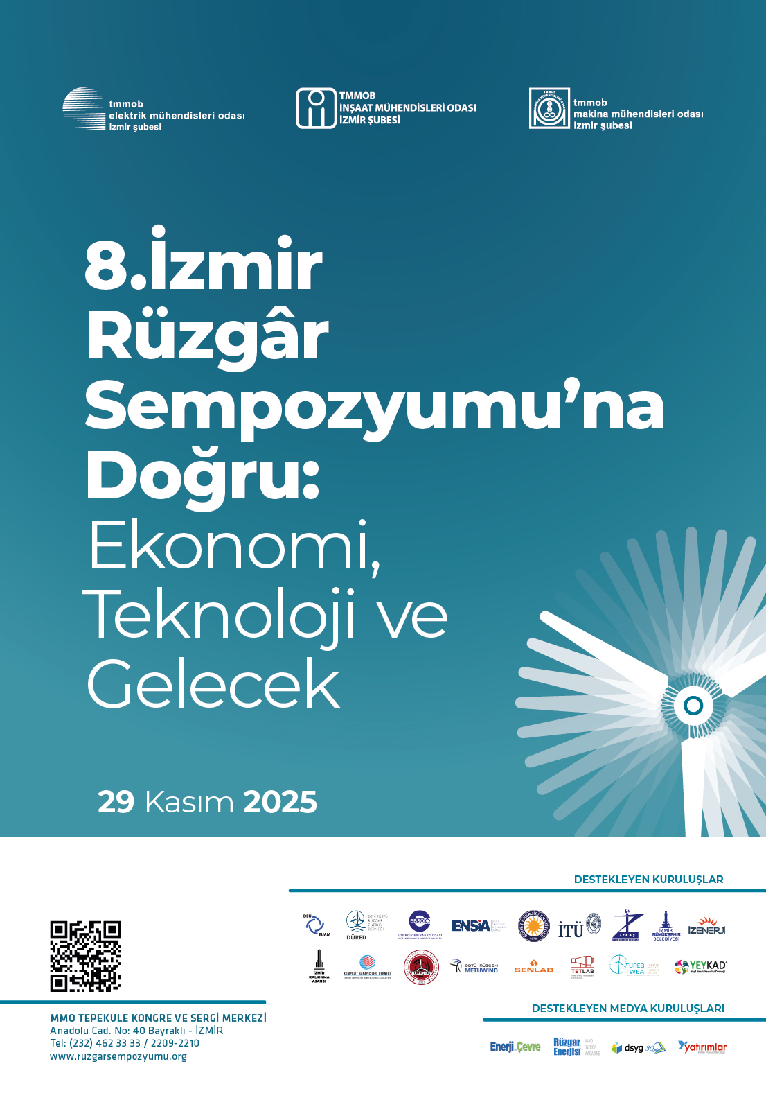 Elektrik Mühendisleri Odası, İnşaat Mühendisleri Odası ve Makina Mühendisleri Odası İzmir Şubeleri tarafından düzenlenecek olan `8. İzmir Rüzgar Sempozyumu’na Doğru: Ekonomi, Teknoloji ve Gelecek” başlıklı seminer, 29 Kasım 2025 tarihinde Tepekule Kongre ve Sergi Merkezi`nde gerçekleştirilecektir. Etkinlik programına ve kayıt bağlantısına yazımızın devamından ulaşabilirsiniz.