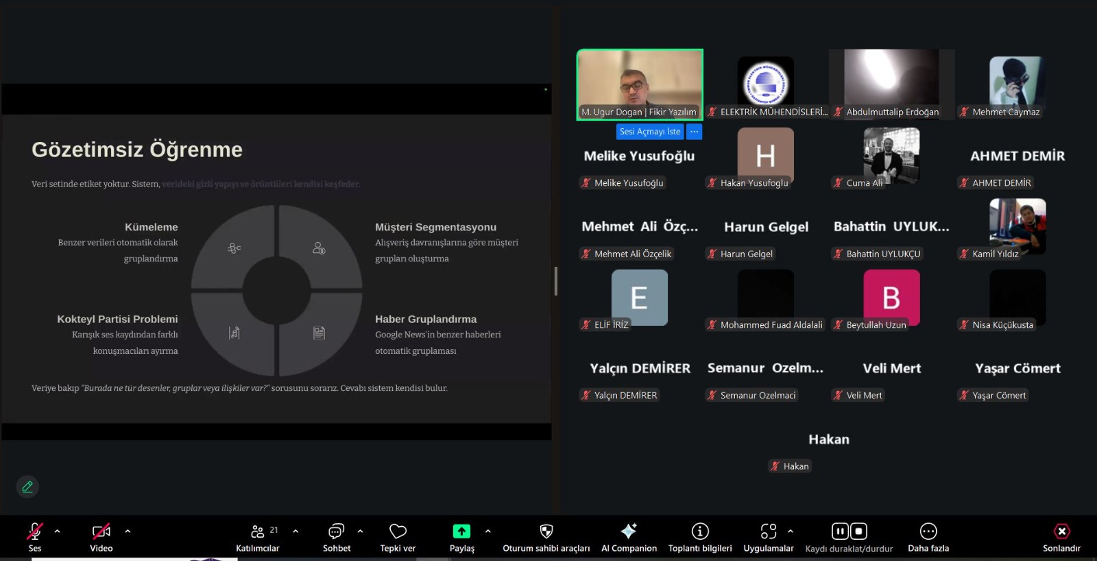 ŞUBEMİZDE, MÜHENDİSLİKTE UYGULAMA EĞİTİMLERİ KAPSAMINDA’’ YAPAY ZEKA MAKİNE ÖĞRENMESİ ‘’ EĞİTİMİ TAMANLANDI.