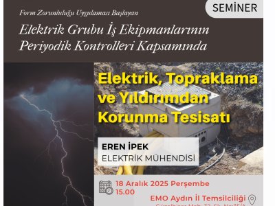 ELEKTRİK, TOPRAKLAMA ve YILDIRIMDAN KORUNMA TESİSATLARININ PERİYODİK KONTROLLERİ Eren İpek Elektrik Mühendisi 📅18 Aralık 2025 Perşembe - ⏱️15.00