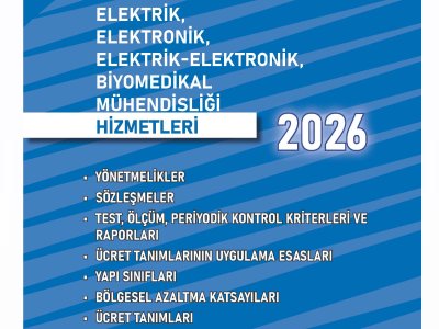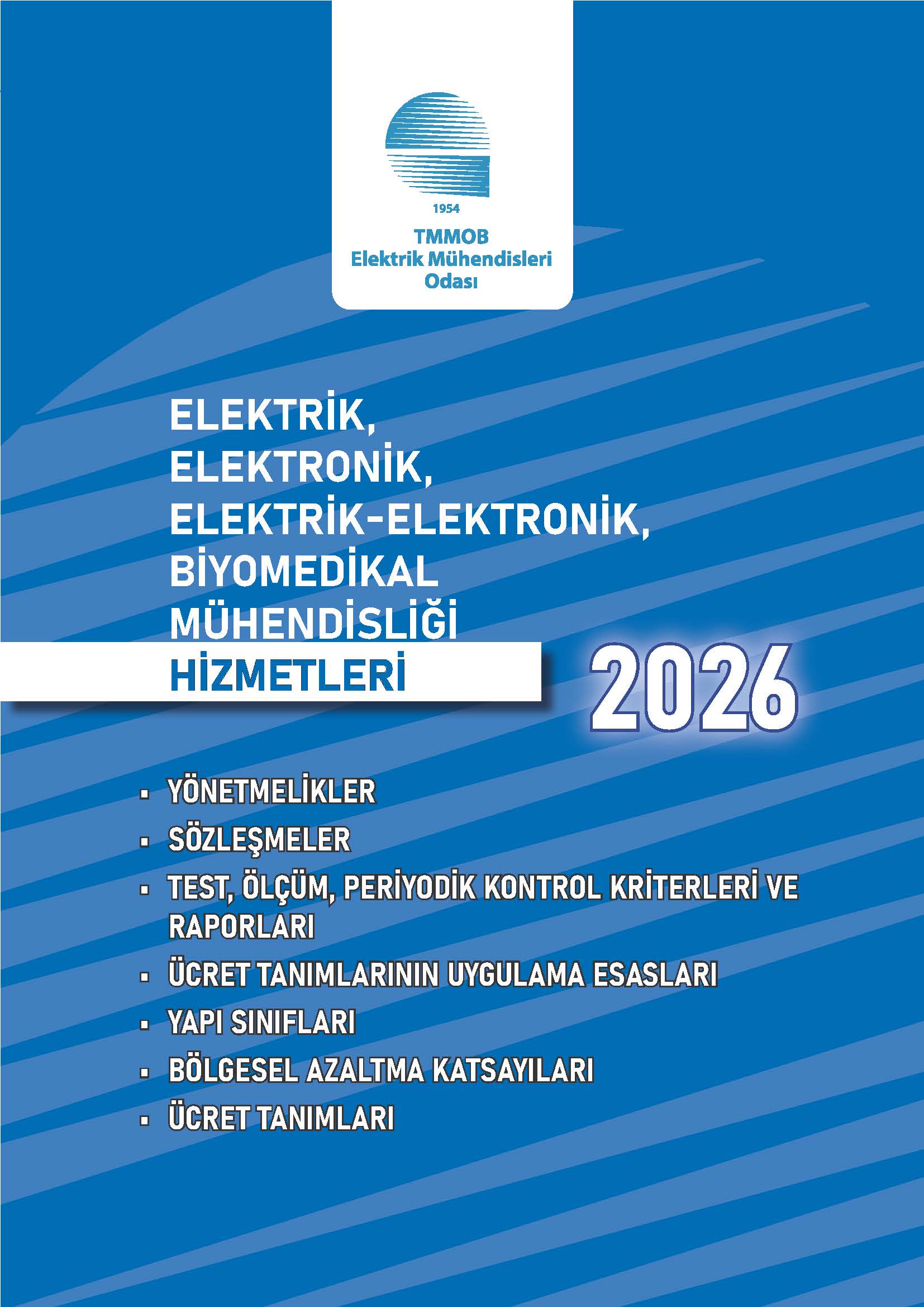 1 Eylül 2025 tarihinden itibaren, elektrik tesisatı ve topraklama tesisatı, yıldırımdan korunma tesisatı ve yangın algılama ve uyarı sistemleri periyodik kontrollerinde şeklen ve içerik olarak eksiksiz kullanılması zorunlu hale gelen rapor formatlarını bu yayın içerisinde bulabilirsiniz. 2026 yılında geçerli ücretler 26-27-28 Nisan 2024 tarihli Elektrik Mühendisleri Odası 49. Olağan Genel Kurulu`nun verdiği yetki ve 09.12.2010 tarih ve 27780 sayılı Resmî Gazete`de yayımlanarak yürürlüğe giren Türk Mühendis ve Mimar Odaları Birliği Elektrik Mühendisleri Odası En Az Ücret ve Mesleki Denetim Uygulama Esasları Yönetmeliği`nin 6. maddesi uyarınca EMO Yönetim Kurulu`nun 10.11.2025 tarih ve 49/50 sayılı toplantısında kabul edilmiştir ve 01.01.2026 tarihi itibariyle yürürlüğe girecektir. 2026 Yılı Elektrik, Elektronik, Elektrik-Elektronik, Biyomedikal Mühendisliği Hizmetleri kitabına aşağıdaki bağlantılardan ulaşabilirsiniz.