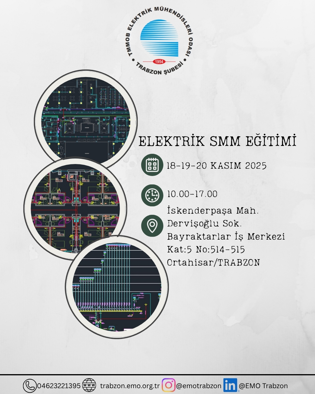 Kıymetli Üyemiz, Şubemizde 18-19-20 Kasım 2025 tarihlerinde yüz yüze Elektrik SMM Eğitimi düzenlenecektir.