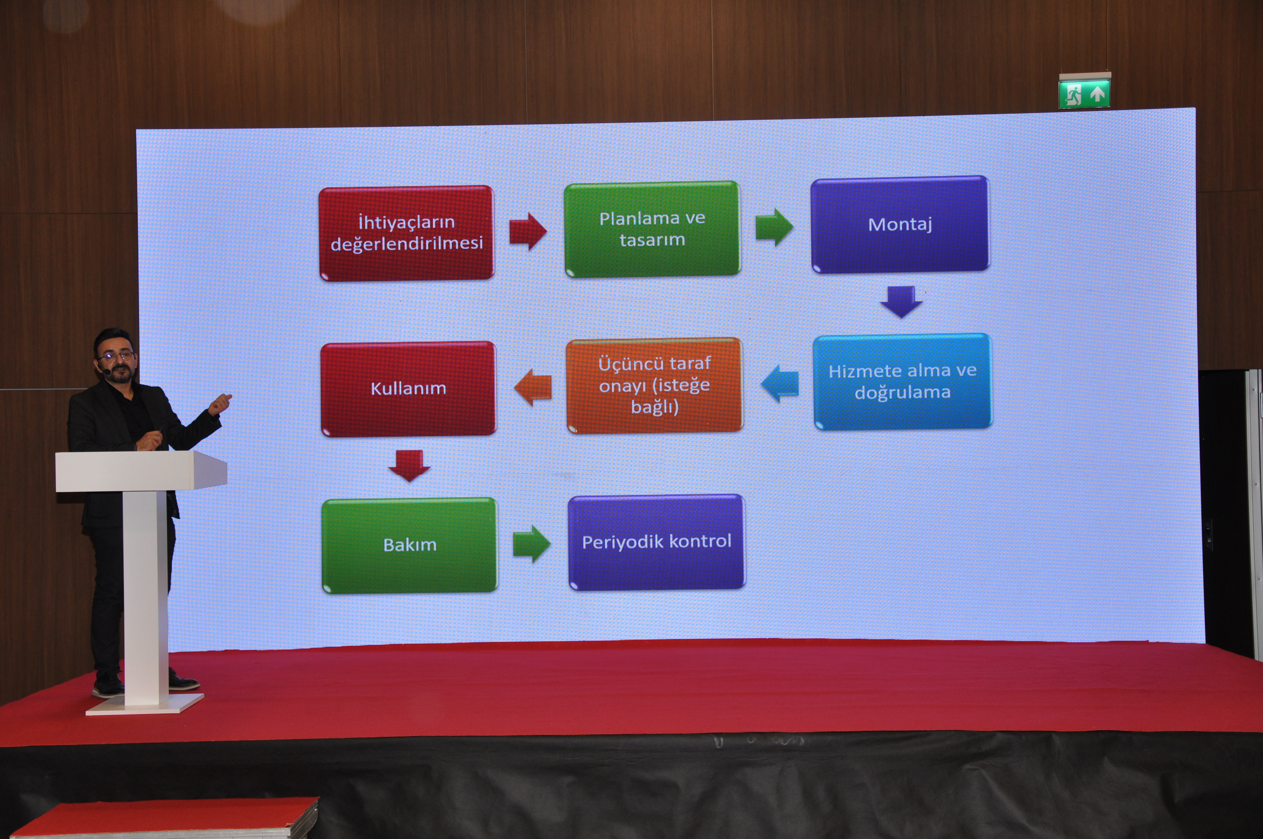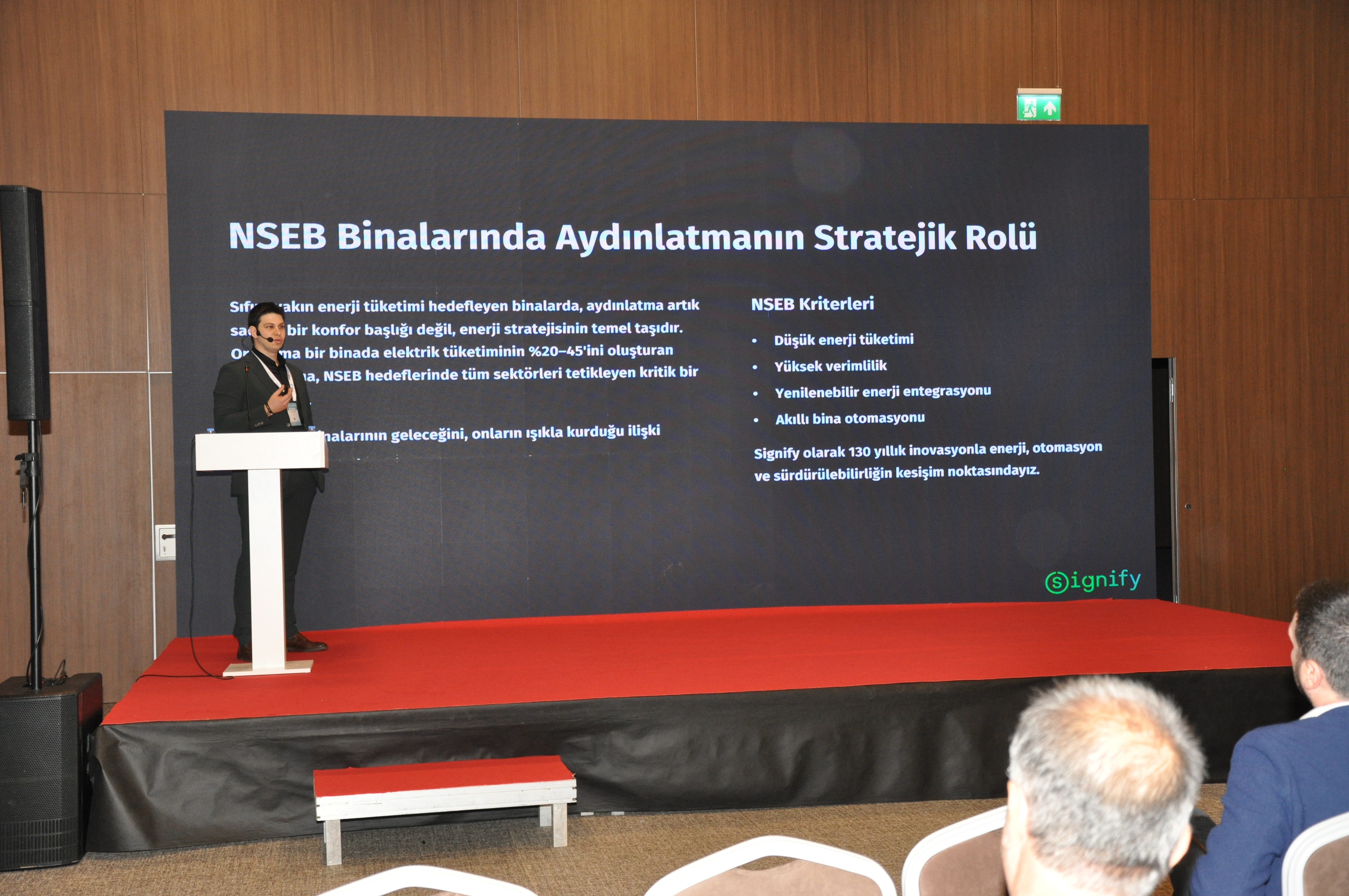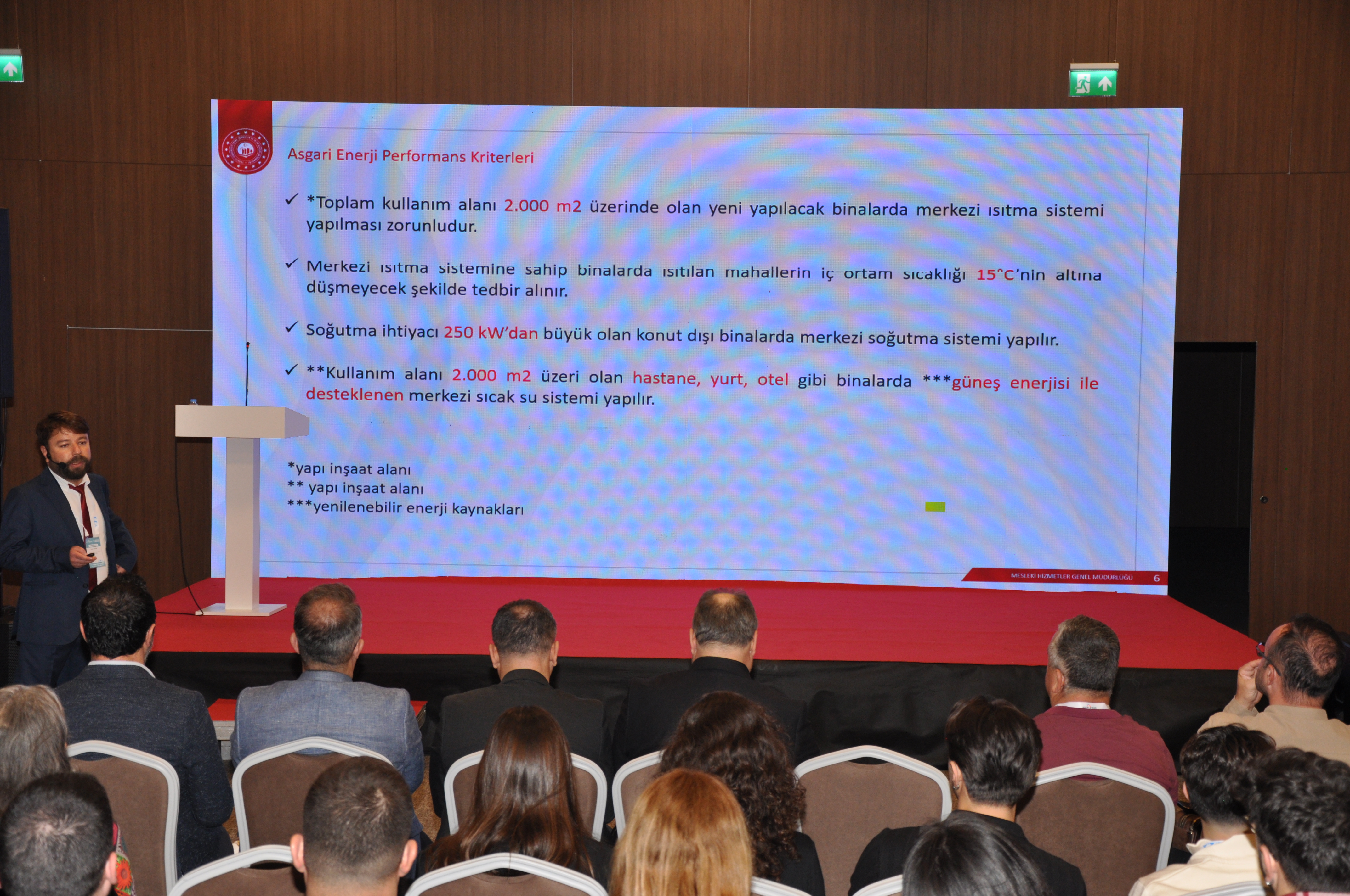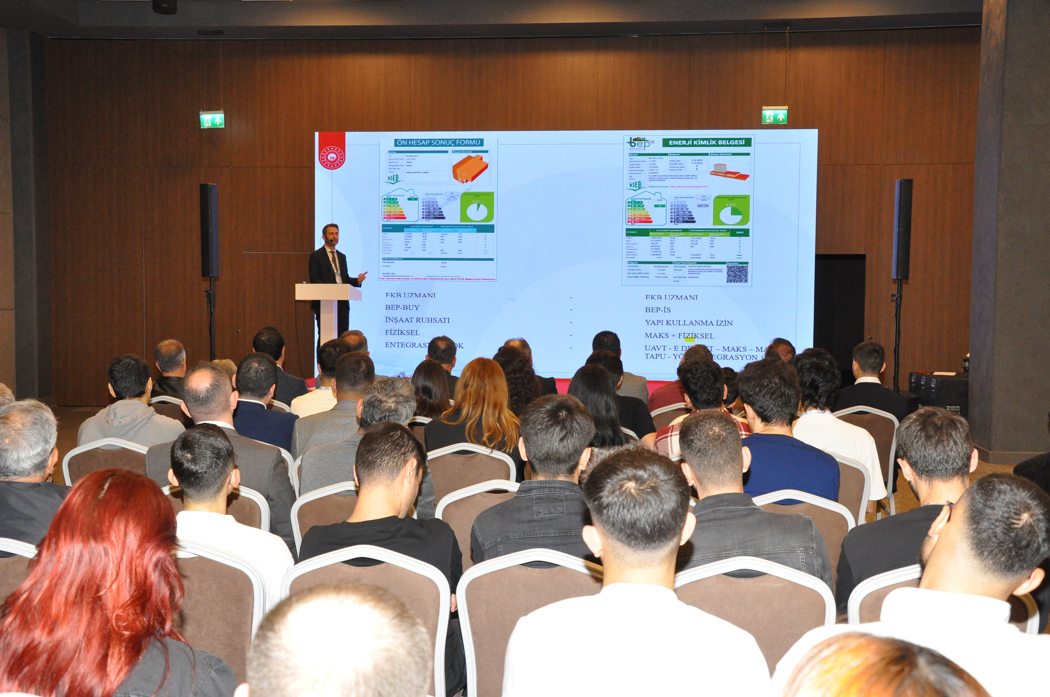 Şube Başkanımız Şaban TAT, HOTEL-TECH Antalya – 3. Otel Teknik Ekipman ve Malzemeleri Fuarı`na katılan üyelerimiz ile katılımcı firmaların stantlarını ziyaret ederek başarılı bir fuar geçirmeleri yönündeki temennilerini iletti. Ayrıca EMOAntalya Şubesi olarak sempozyum ve fuar boyunca tanıtım standımızla da yer aldık. "Sıfır Enerji, Sonsuz Gelecek" temasıyla düzenlenen sempozyumda dört ana oturumda toplam 14 sunum yapıldı, farklı disiplinlerden uzmanların bilgi ve deneyimleri paylaşıldı. NSEB`25 – Neredeyse Sıfır Enerjili Binalar Sempozyumu`nun ilk gününde Yangın Güvenliği Oturumu gerçekleştirildi. Oturumda; Şubemiz adına Üyemiz Alper GÜL "Yangın Algılama ve Otomasyon Sistemleri", Makina Mühendisleri Odası Antalya Şubesi adına Dr. Cüneyt Deniz KÜHEYLAN "Yangın Güvenliğinde Mekanik Sistemler", Mimarlar Odası Antalya Şubesi adına Doç. Dr. Nuri SERTESER "Yangın Kaçış Tasarımları" ve İnşaat Mühendisleri Odası Antalya Şubesi adına Yalçın ARSLAN "Binalarda Pasif Yangın Durdurucu Önlemler" başlıklı sunumlarını gerçekleştirdi. NSEB`25 – Neredeyse Sıfır Enerjili Binalar Sempozyumu`nun ikinci gününde EMO Antalya Şubesi Oturumu gerçekleştirildi. Şube Yazmanımız Emre EKE` nin oturum başkanlığını yaptığı Oturumda; • Necip AYAS- T.C. Çevre, Şehircilik ve İklim Değişikliği Bakanlığı – "Binalarda Enerji Verimliliği Mevzuatı ve Faaliyetleri" •Enes DOĞAN- T.C. Çevre, Şehircilik ve İklim Değişikliği Bakanlığı- "Binalarda Enerji Performansı Yönetmeliği Uygulamalarında Karşılaşılan Sorunlar" başlıklı sunumlarını gerçekleştirdi. Oturumun ardından konuşmacılara Şube Başkanımız Şaban TAT tarafından teşekkür plaketi takdim edildi. Diğer oturumun başkanlığını Başkan Yardımcımız Durali ÇAKIR yaparken, bu oturumda da; •Umut AYDOĞMUŞ- Signify Türkiye "Binalarda Enerji Performansı Yönetmeliği Uygulamalarında Karşılaşılan Sorunlar" •Yasin Berk DENİZ- T.C. Enerji ve Tabii Kaynaklar Bakanlığı- "Enerji Verimliliği Hibe Destekleri" başlıklı sunumlarını gerçekleştirdi. Oturumun ardından konuşmacılara Şube Başkan Yardımcımız Durali ÇAKIR tarafından teşekkür plaketi takdim edildi.