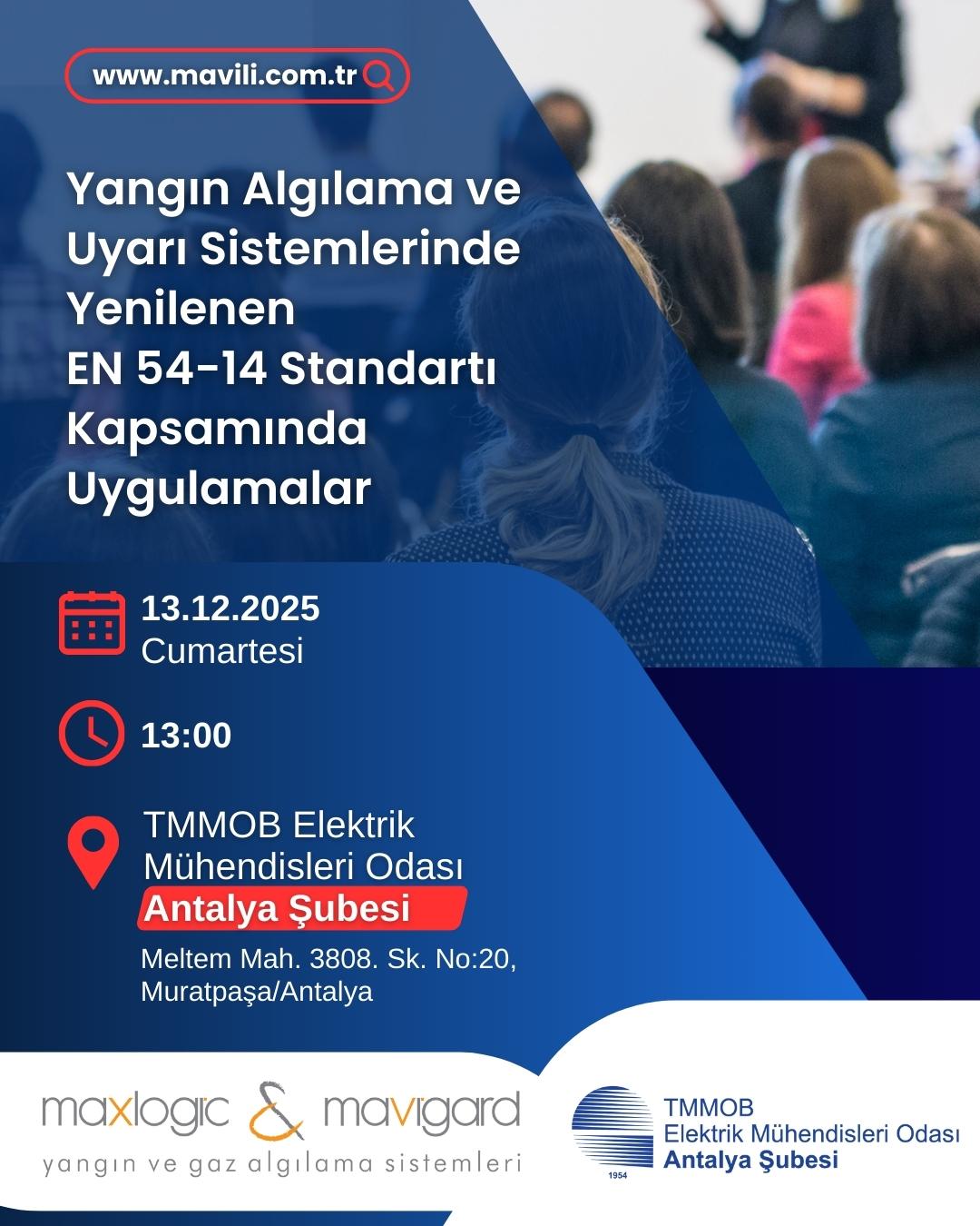 Şubemiz ve Mavili Elektronik A.Ş. firması işbirliği ile 13 Aralık 20125 Cumartesi günü Saat 13.30 da Şube Hizmet Binamızda “Yangın Algılama ve Uyarı Sistemlerinde Yenilenen EN 54-14 Standarttı Kapsamında Uygulamalar” konulu teknik seminer düzenlenecektir. Seminere tüm üyelerimiz davetlidir.