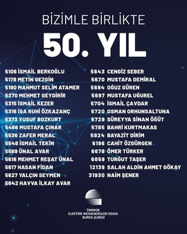 EMO BURSA ŞUBESİ GELENEKSEL GECE ODAMIZIN KURULUŞUNUN 71. YILI KUTLAMASI VE PLAKET TÖRENİ Tarih : 20 Aralık 2025 Cumartesi Saat : 19:30 Bilet ücreti : 1.500,00 TL/ Kişi Yer : Bursa Ramada Otel, Odunluk Mah. Liman Cd. No:13/ A Nilüfer/ BURSA Detaylı bilgi ve rezervasyon için şubemiz ile irtibata geçmenizi rica ederiz. 02244511212