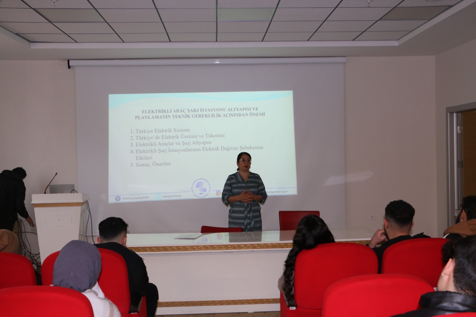 Şube Başkanımız İslim ARIKAN`ın katılımlarıyla gerçekleştirilen Kariyer Buluşması Konferansı, sektörün güncel gelişmeleri ile geleceğin enerji vizyonu çerçevesinde başarıyla tamamlanmıştır. Konferans kapsamında, katılımcılara kariyer planlama, sektörel yönelimler ve mesleki gelişim alanlarında önemli bilgiler sunulmuş; ayrıca elektrikli araç şarj istasyonları sektöründeki yenilikler ile yeşil enerji dönüşümünün sektöre etkileri, kapsamlı biçimde ele alınmıştır. Soru, cevap sonunda, Şube Başkanımıza, Dr. Öğretim Üyesi Yasin İÇEL tarafından teşekkür belgesi verilmiştir.