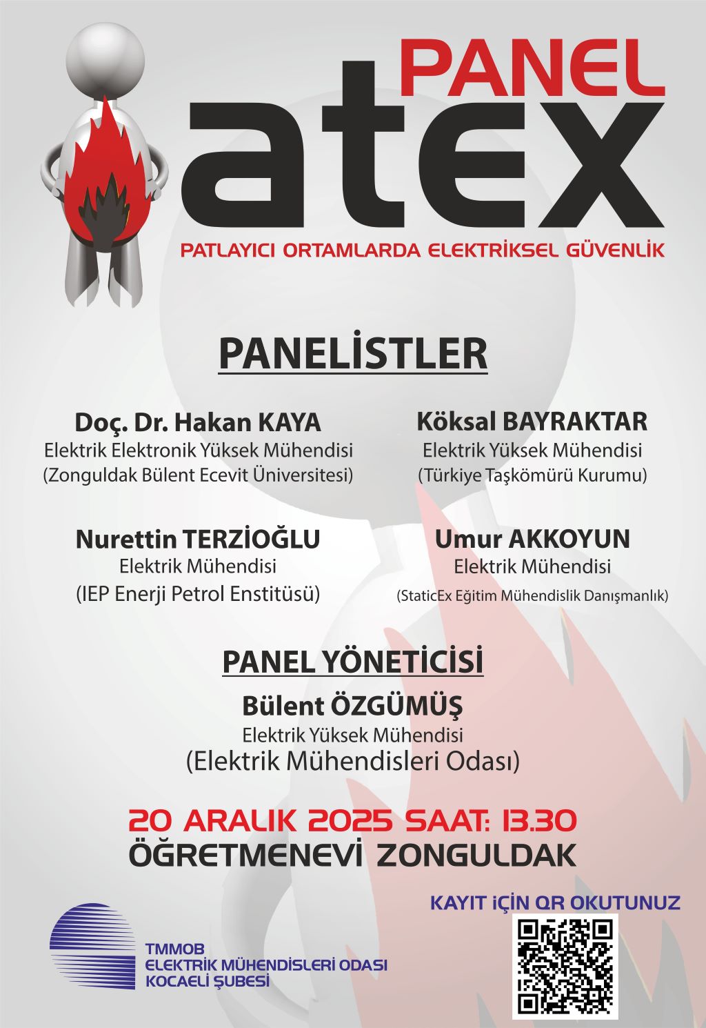 20 Aralık 2025 Cumartesi günü 13.30-16.30 saatleri arasında “ATEX Patlayıcı Ortamlarda Elektriksel Güvenlik Paneli” Zonguldak Öğretmenevi Konferans Salonunda düzenlenecektir.
