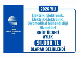 Elektrik Mühendisleri Odası (EMO) Yönetim Kurulu, Elektrik, Elektronik, Elektrik-Elektronik, Biyomedikal Mühendisliği hizmetleri ücretinin 2026 yılı için brüt 91.000 TL/ay olarak belirlenmesine karar verdi. Serbest mühendislik bürolarında ücretli çalışan üyeler için de bu ücret uygulanacak.